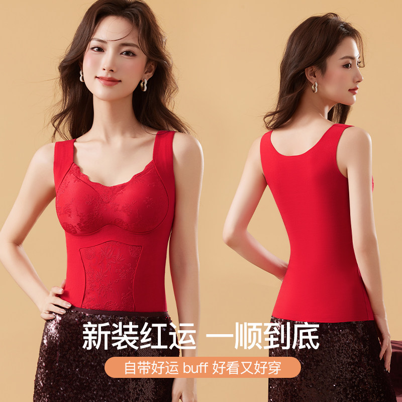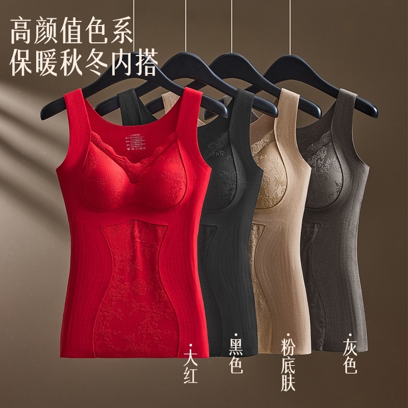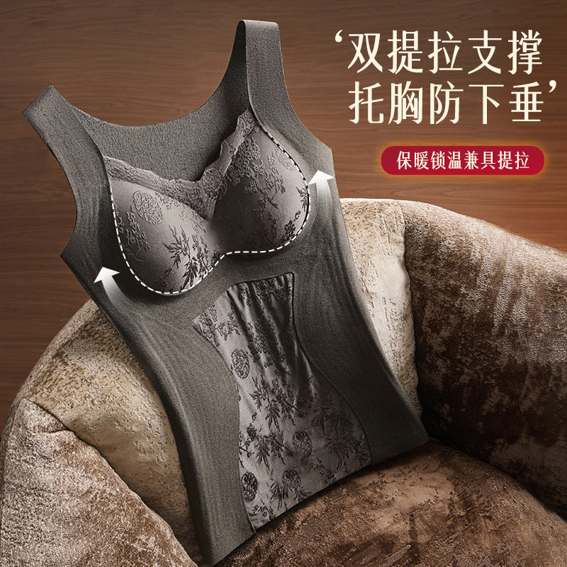 保暖背心免穿文胸带胸垫可拆卸塑身显瘦秋冬女士无痕收腹保暖发热