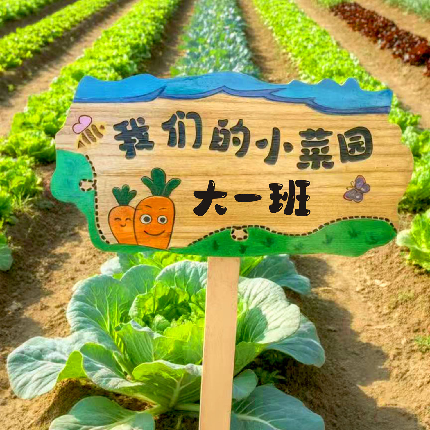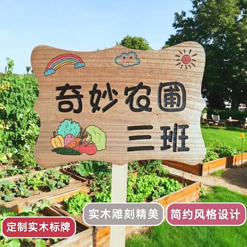 菜园标牌定制幼儿园种植区插地牌农场标牌学校种植园木牌实木雕刻