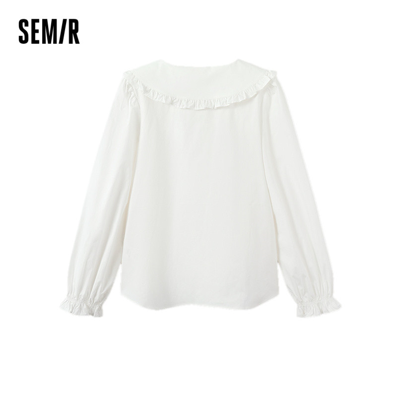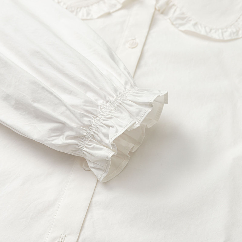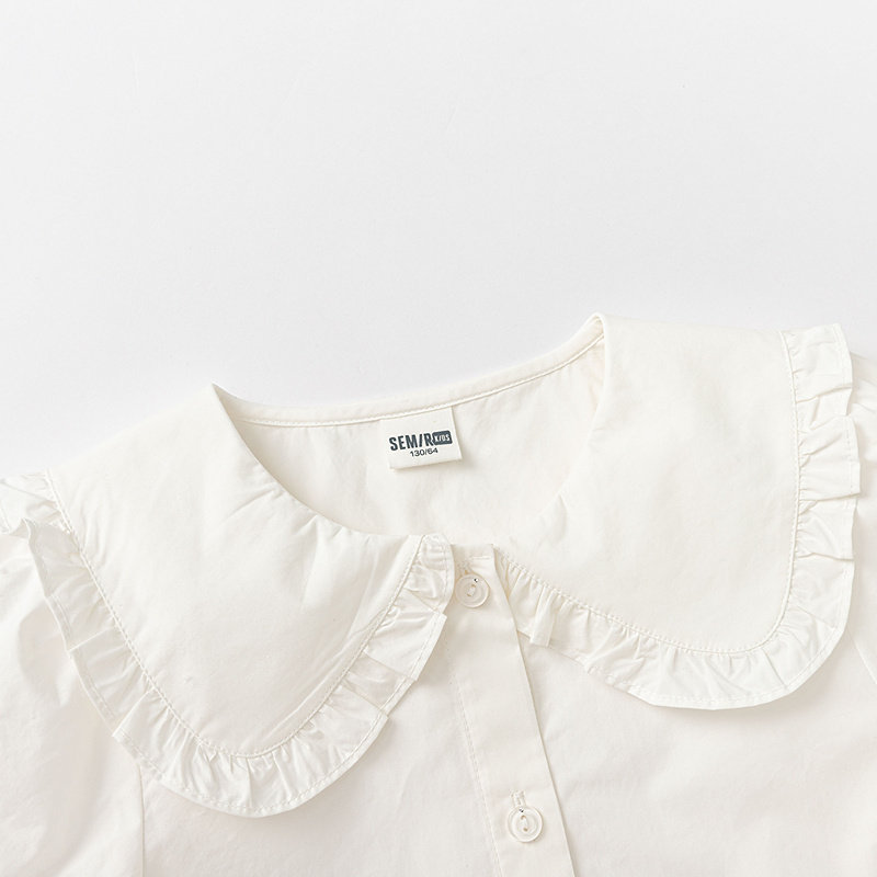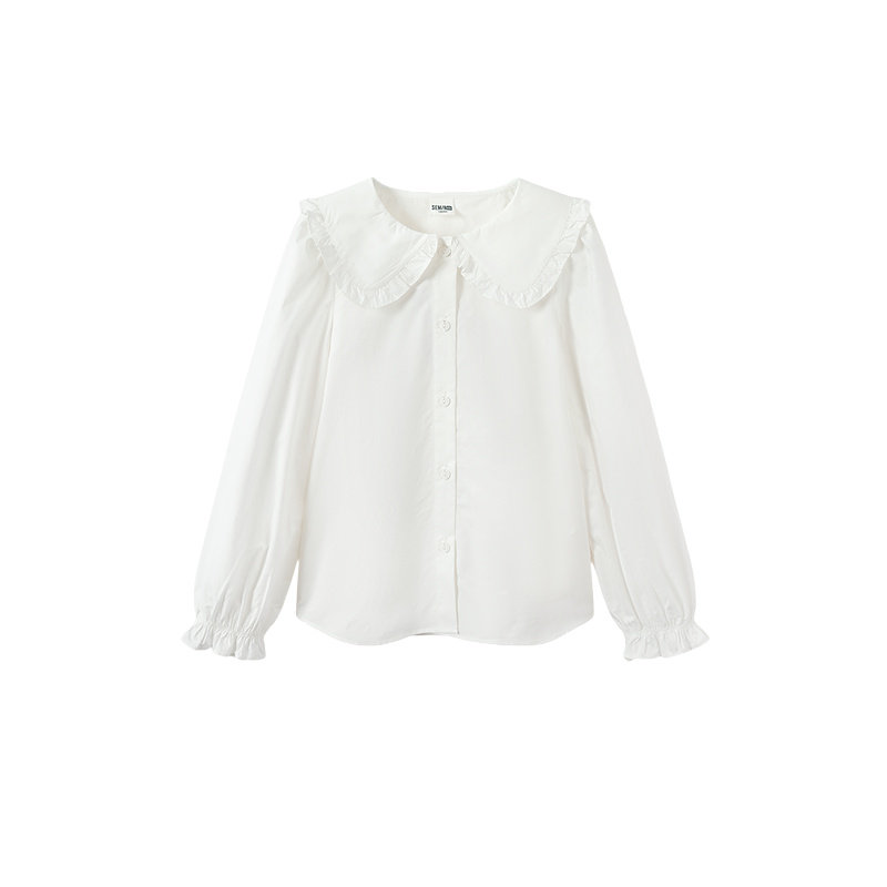 森马儿童25秋女中童法式衬衫纯棉内搭甜美荷叶边纯色百搭长袖上衣