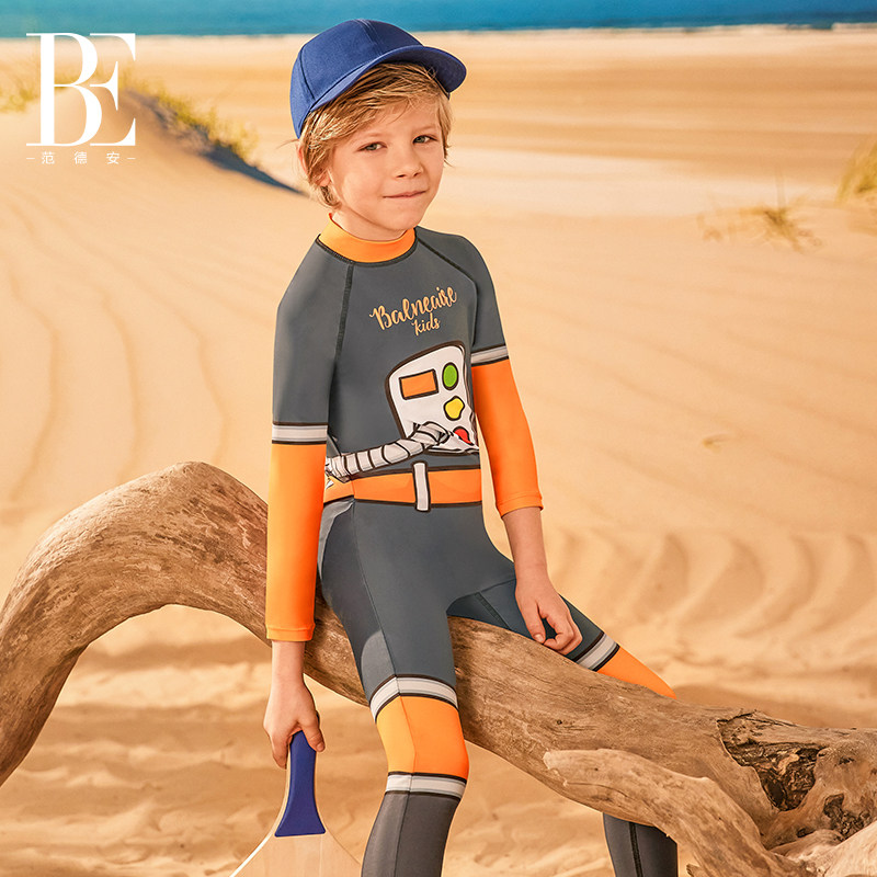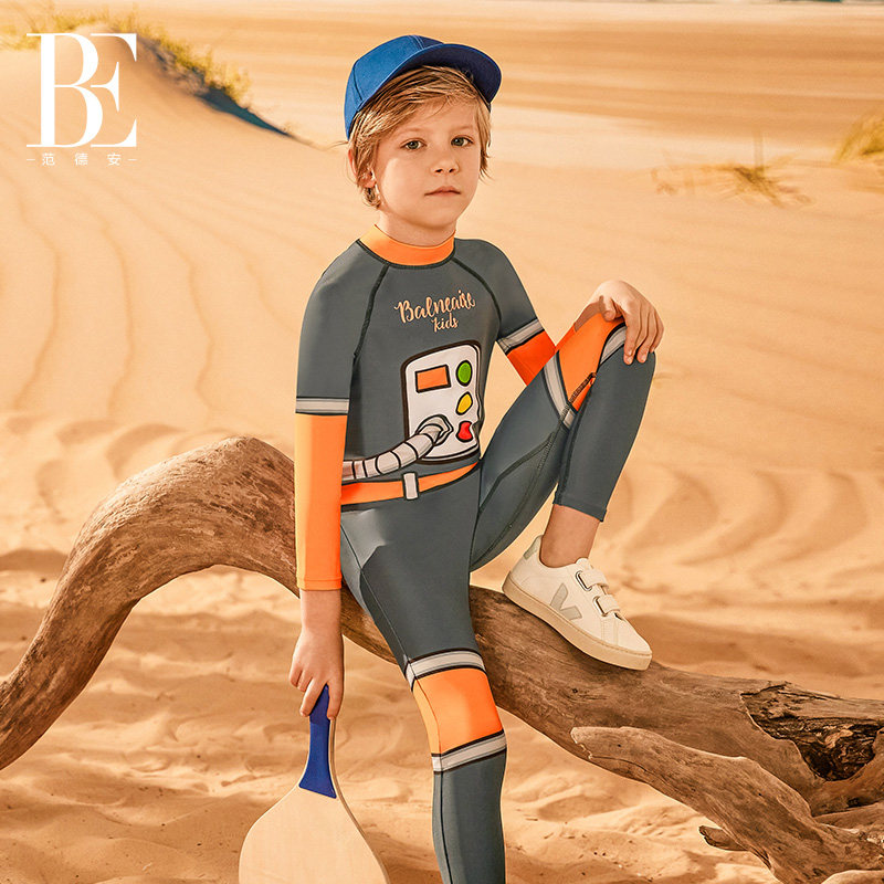 BE范德安连体泳衣儿童男时尚防晒清新疏水快干保守五分裤柔软亲肤