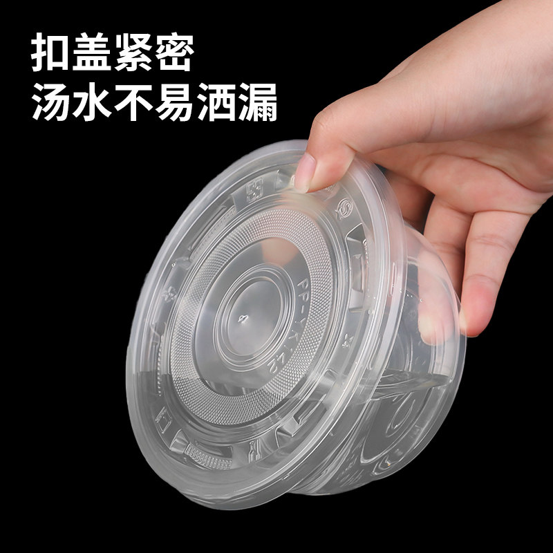 一次性碗塑料碗快餐汤碗家用外卖打包盒圆形透明饭盒加厚食品无盖