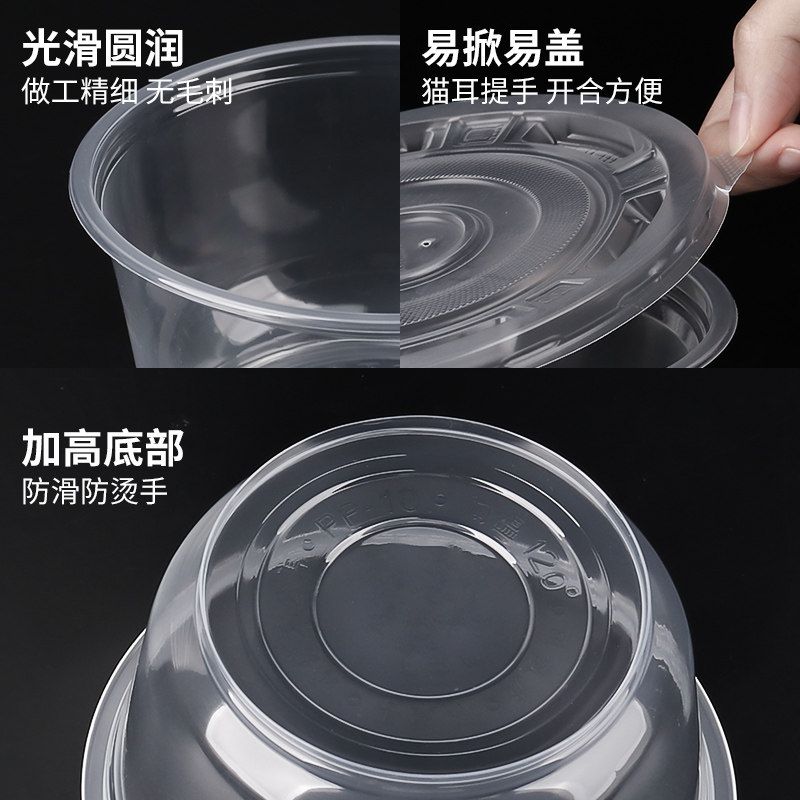 打包盒一次性餐盒商用外卖快餐带盖食品级塑料汤粉面盒子圆形饭盒