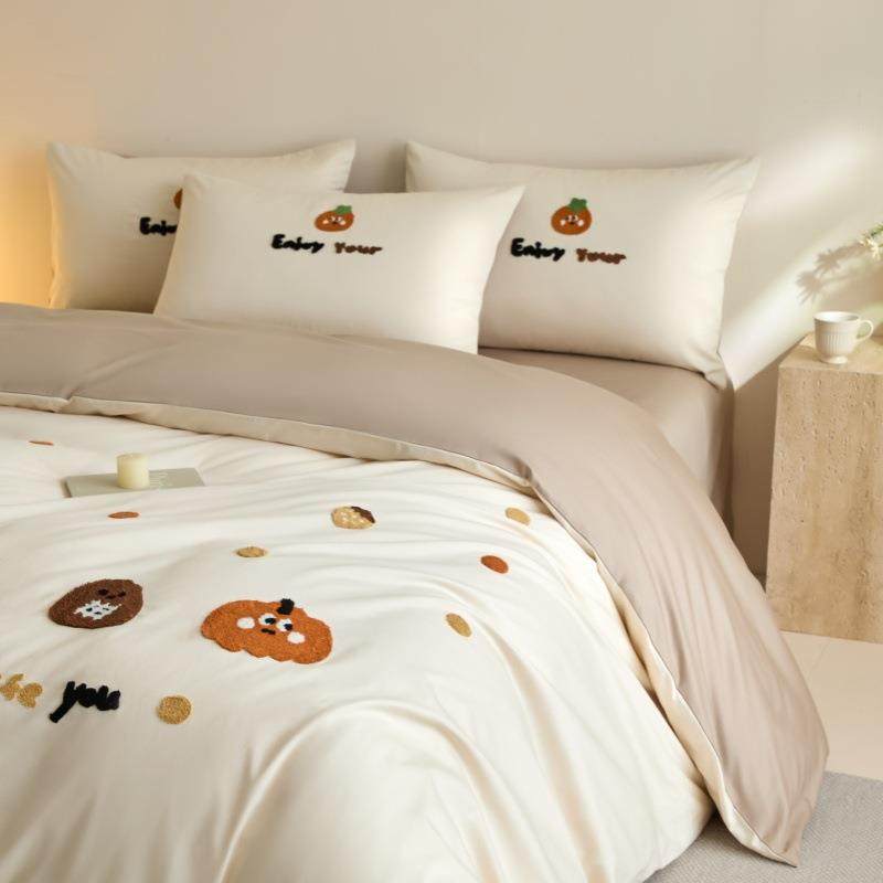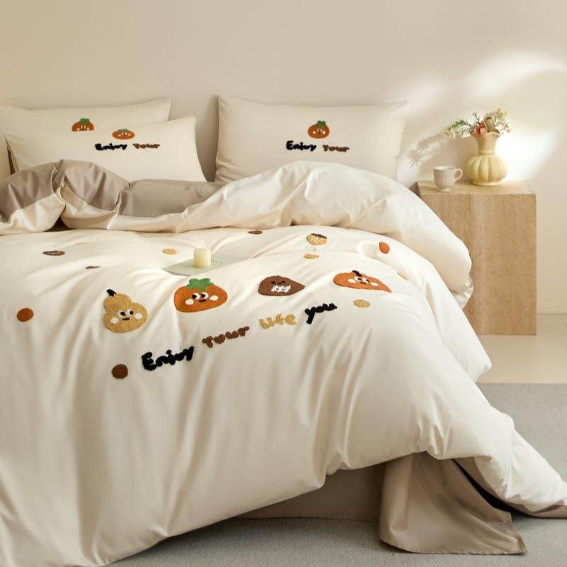 100支长绒棉四件套纯棉毛巾绣被套全棉床单床笠四季通用床上用品4