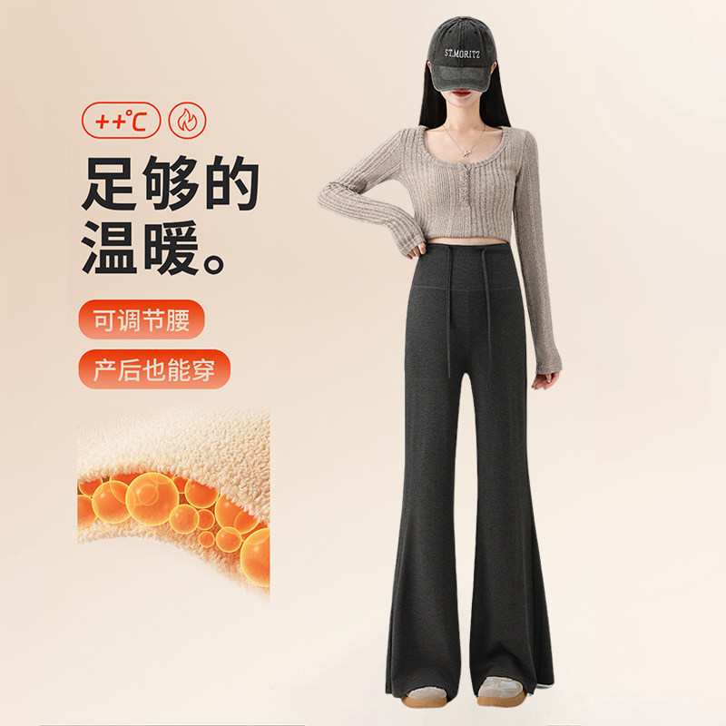 孕妇裤冬季加绒加厚2026新款羊羔绒直筒裤子时尚外穿秋冬款阔腿裤