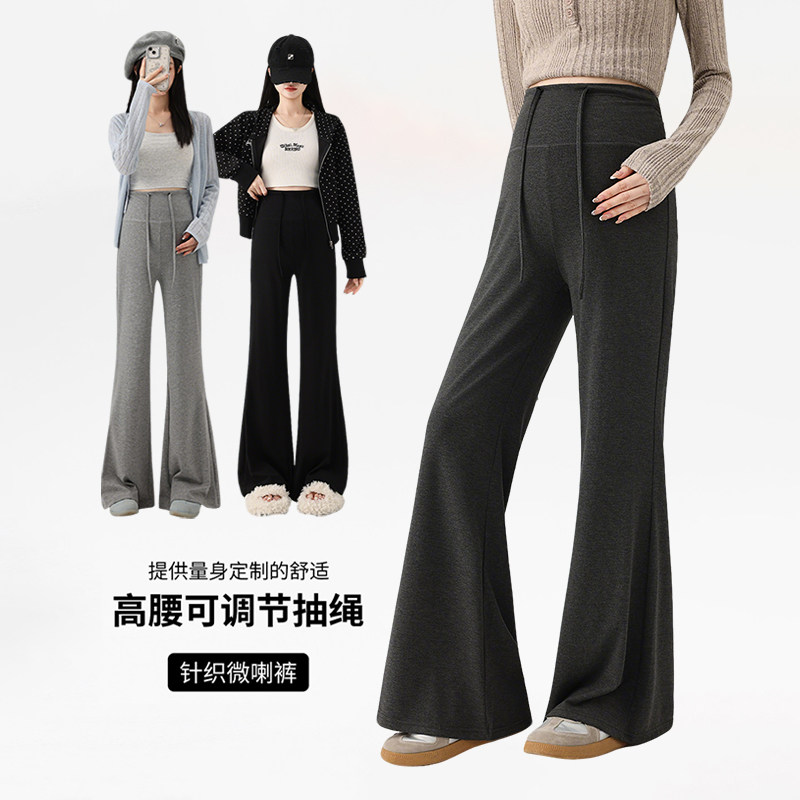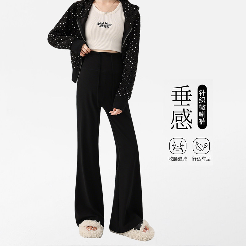 英氏孕妇喇叭裤子秋冬款微喇黑色长裤冬季新款休闲无托腹打底长裤