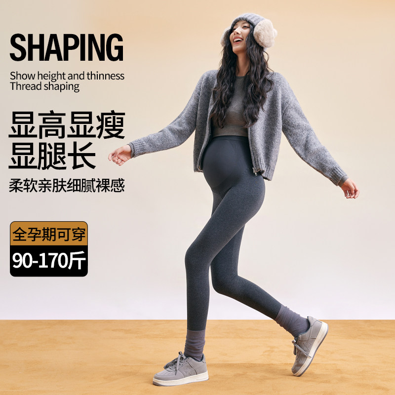 十月结晶孕妇打底裤子小个子瑜伽裸感不勒肚子鲨鱼裤冬季外穿加厚