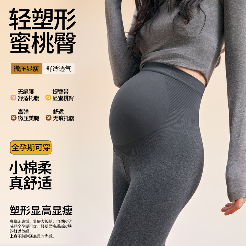 婧麒孕妇打底裤子秋冬外穿纯棉2025新款孕期不勒肚子加绒厚棉裤