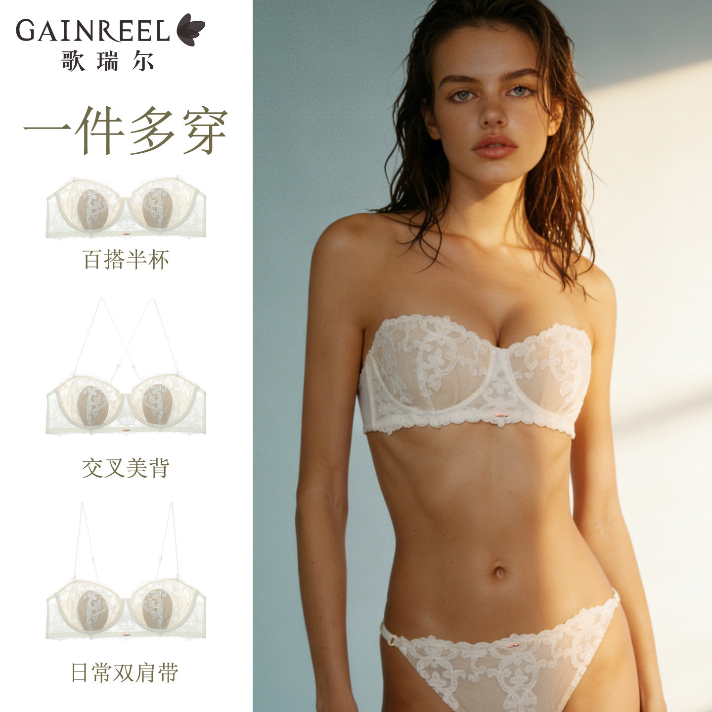 歌瑞尔抹胸内衣轻薄柔软兔耳杯美背蕾丝内搭文胸透气带钢圈胸罩