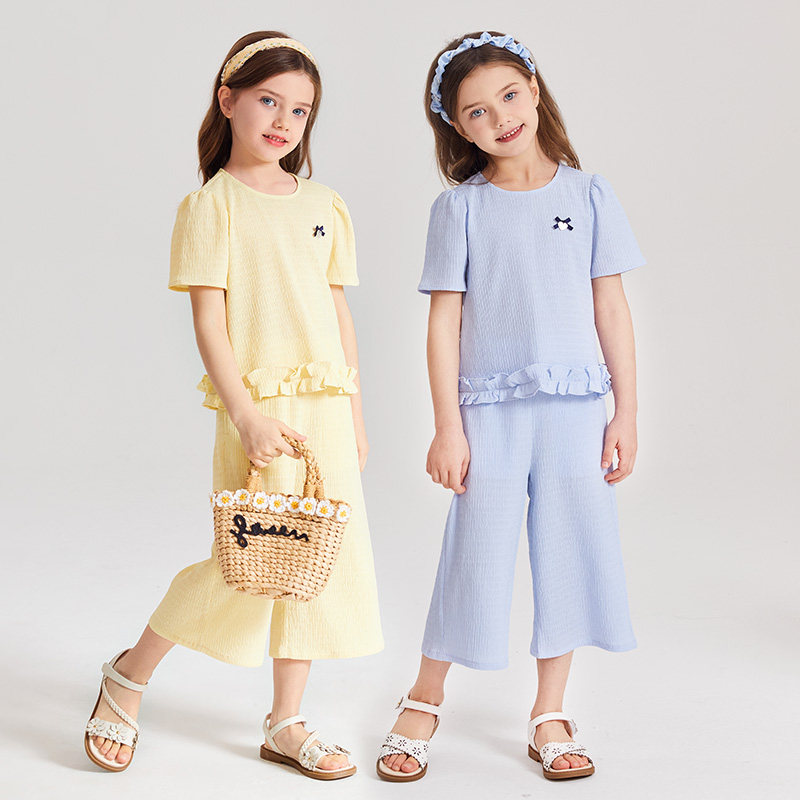 女童 圆领 短袖套装