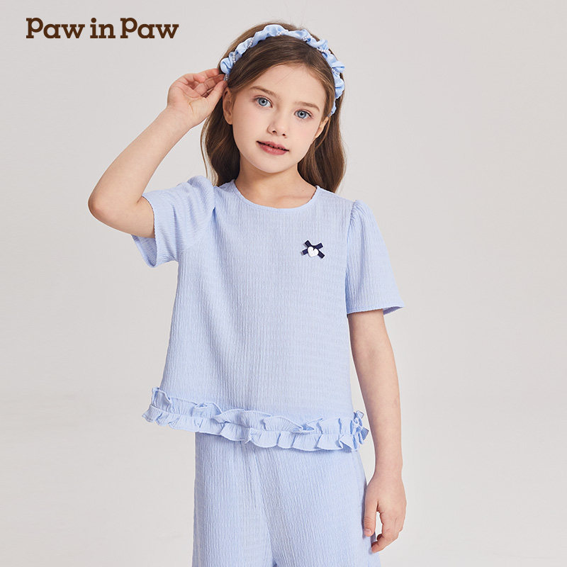 PawinPaw卡通小熊童装夏季女童度假休闲舒适短袖肌理感套装