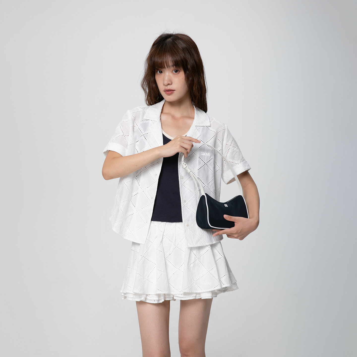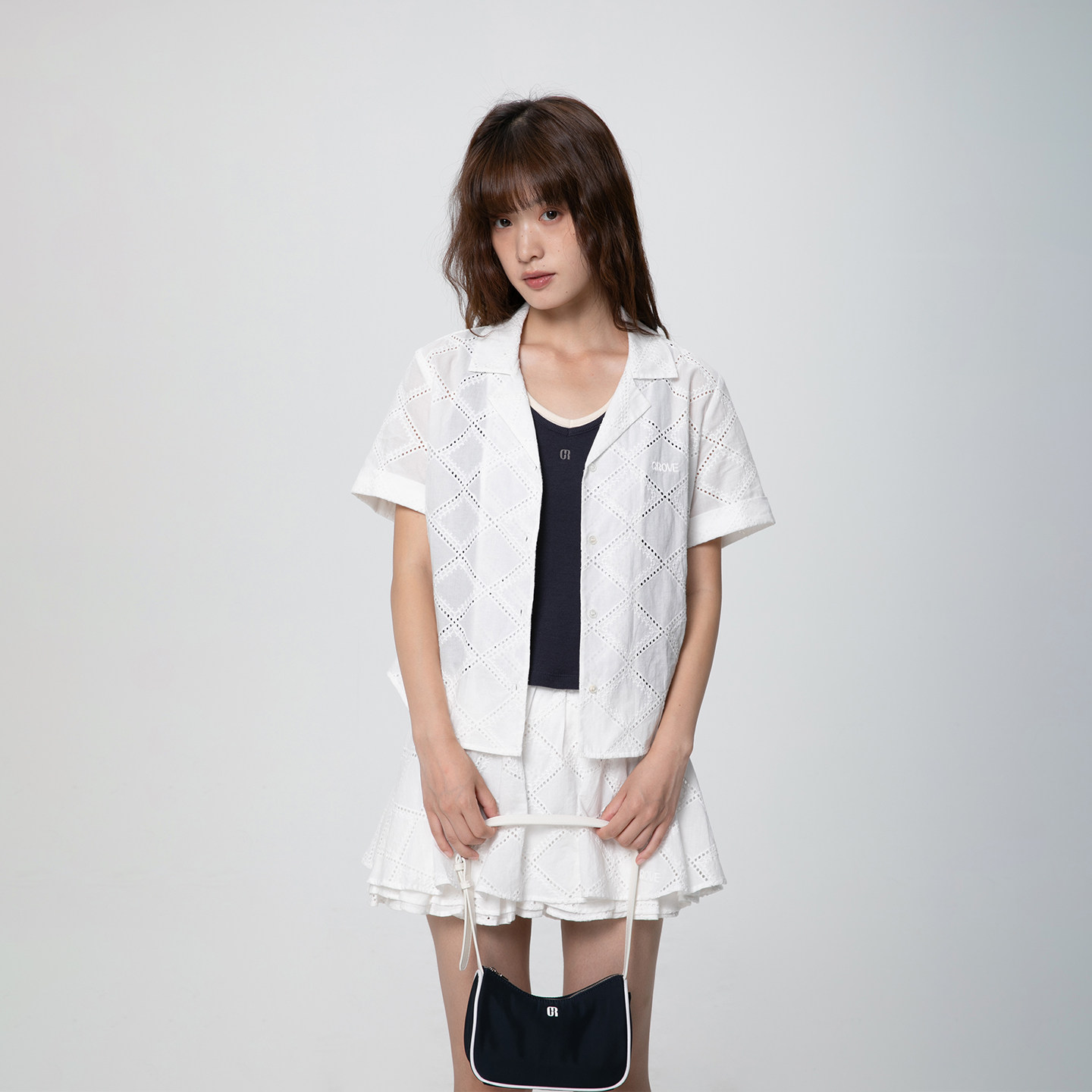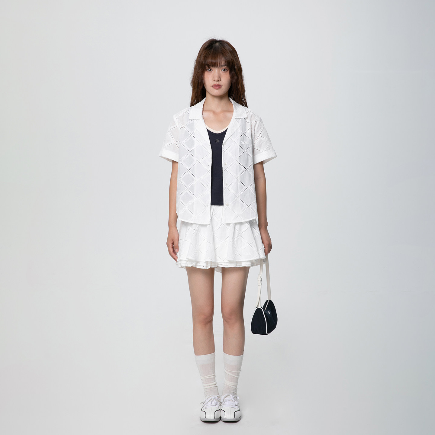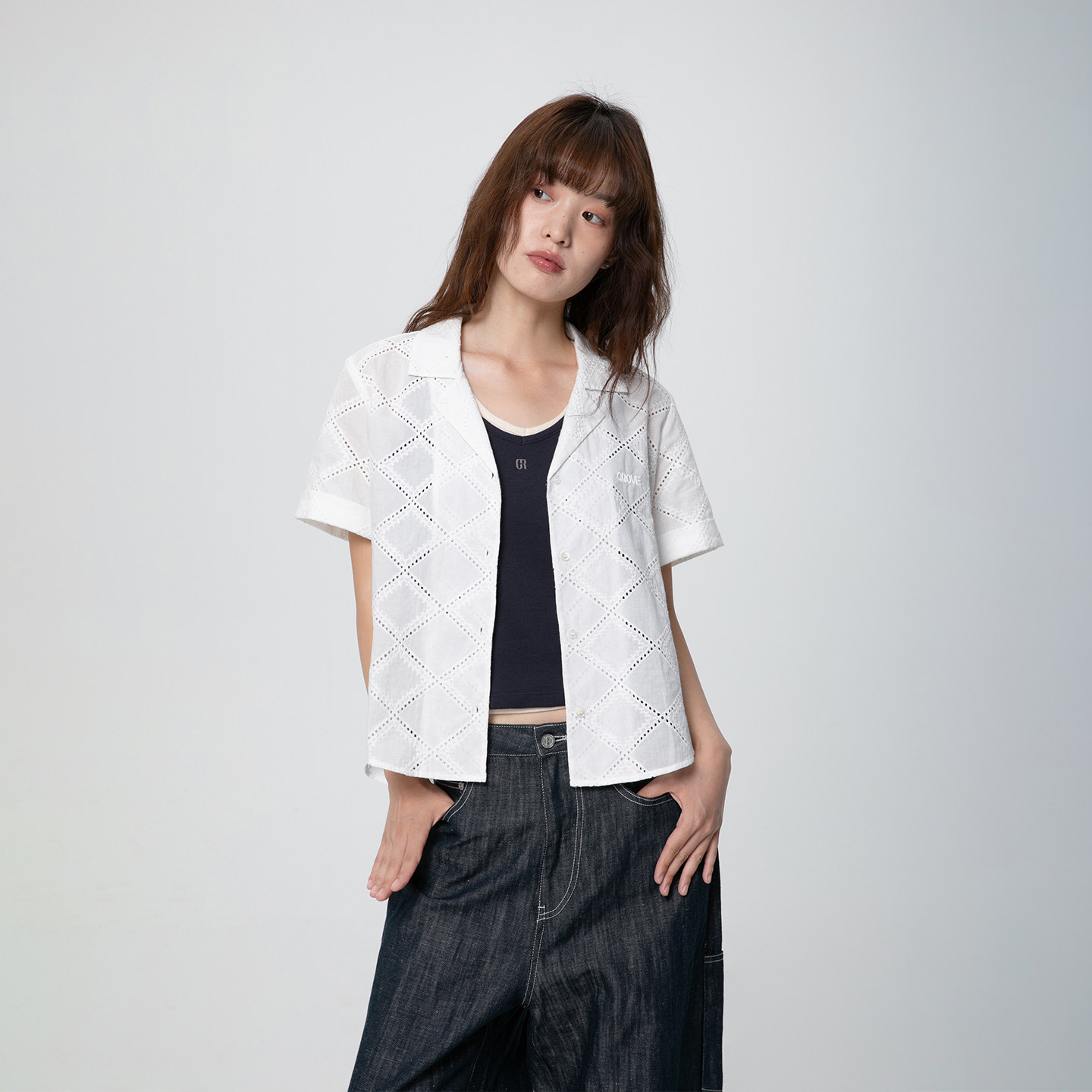 GROVE官方旗舰店2025SS春夏新款女士菱形纹短袖衬衫t恤GCM5BL01