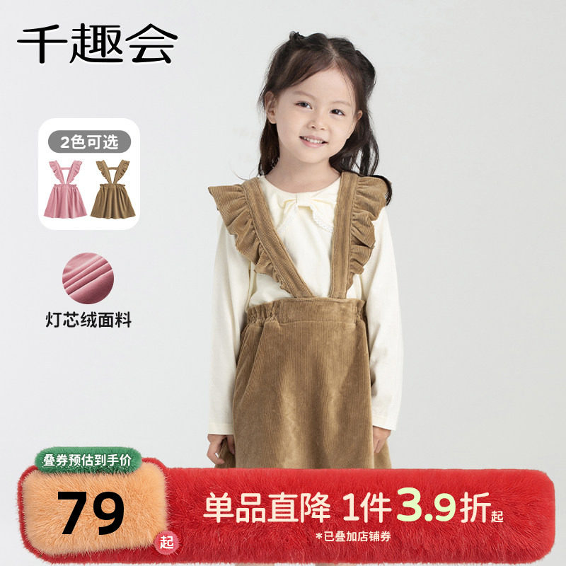 千趣会童装秋冬款女童荷叶边幼儿园宝宝背带可拆卸灯芯绒背带裙