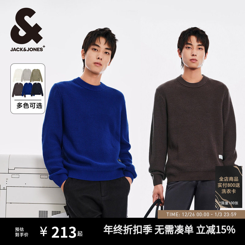杰克琼斯男装秋冬新款可机洗毛衣含羊毛纯色针织衫打底衫上衣情侣