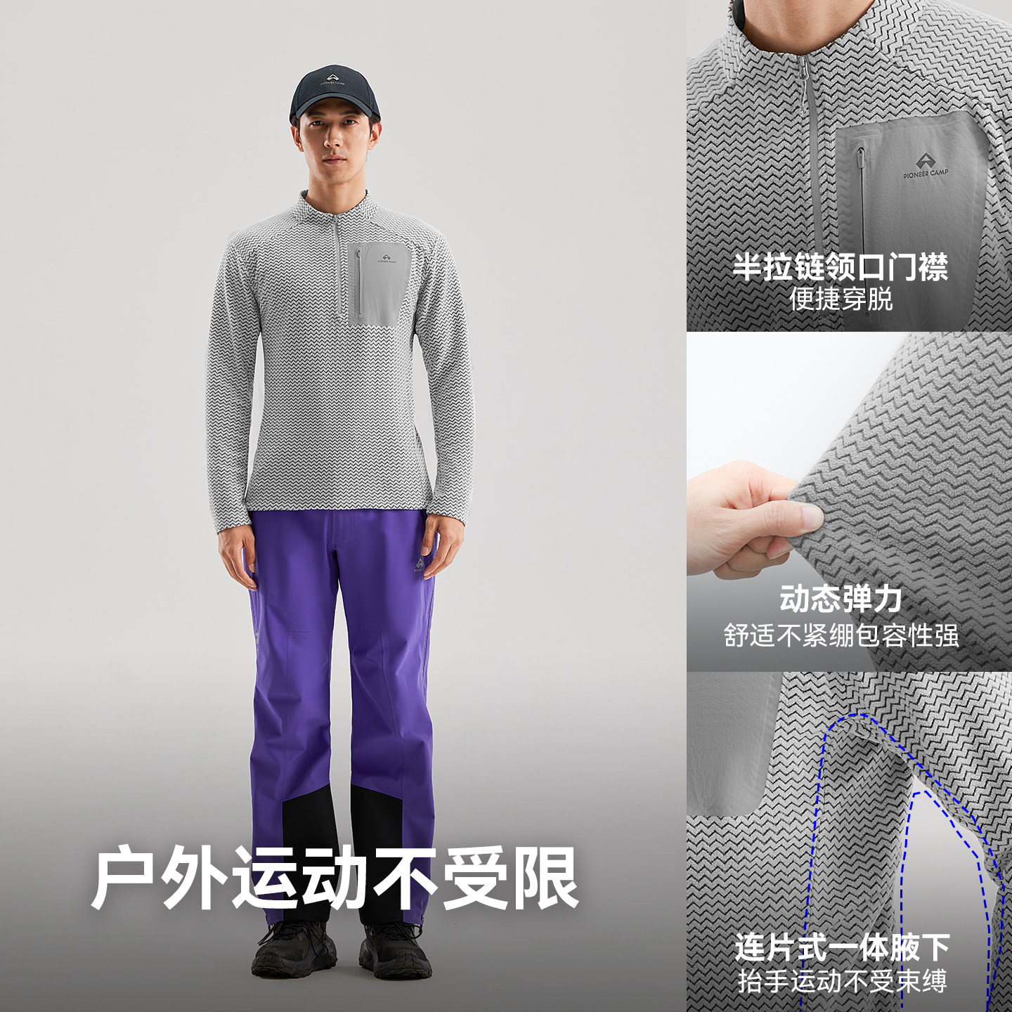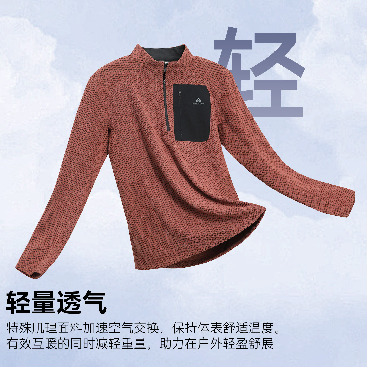 拓路者【200g系列】户外登山半开襟内胆抓绒衣男保暖立领打底衫春