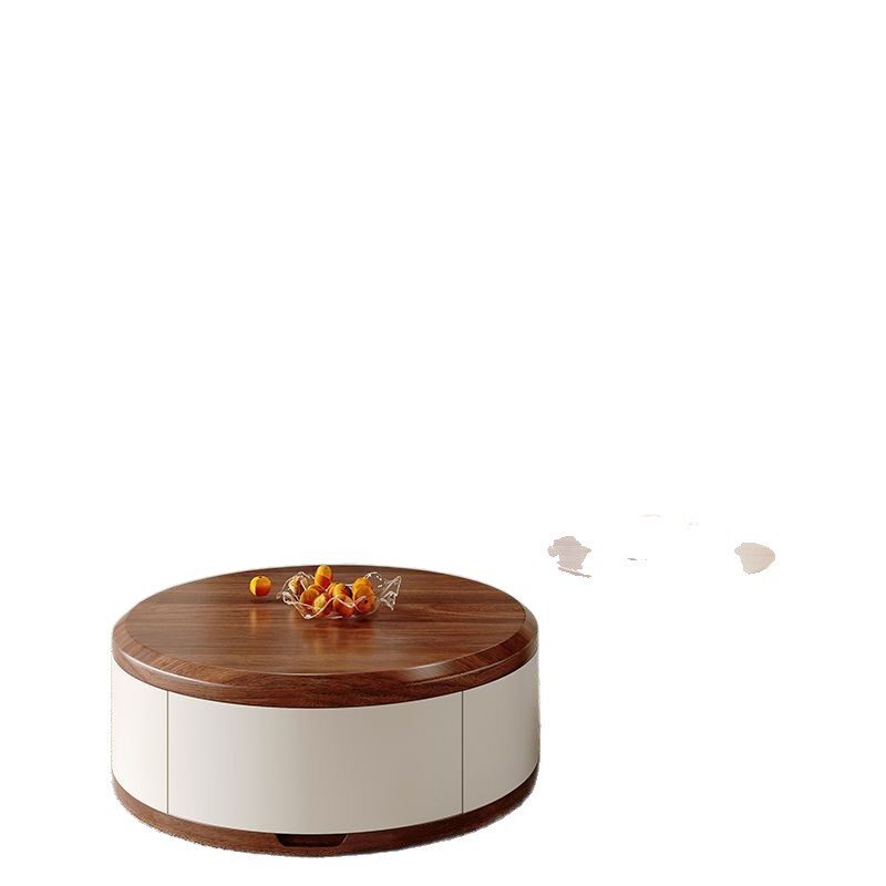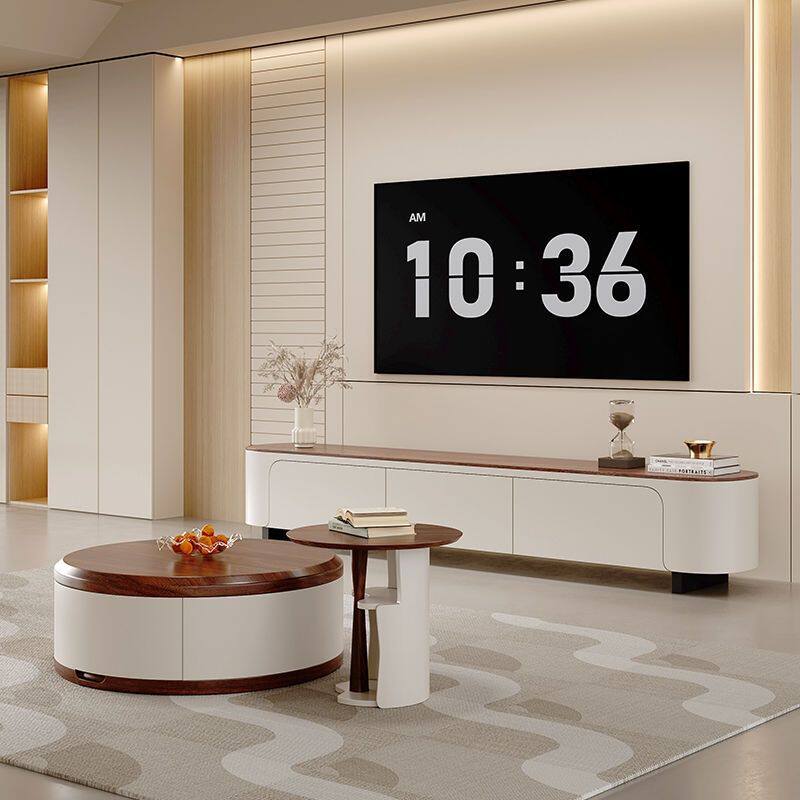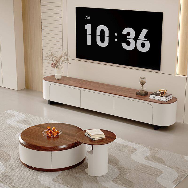 奶油风实木圆形茶几组合客厅家用2024新款轻奢简约现代茶几电视柜