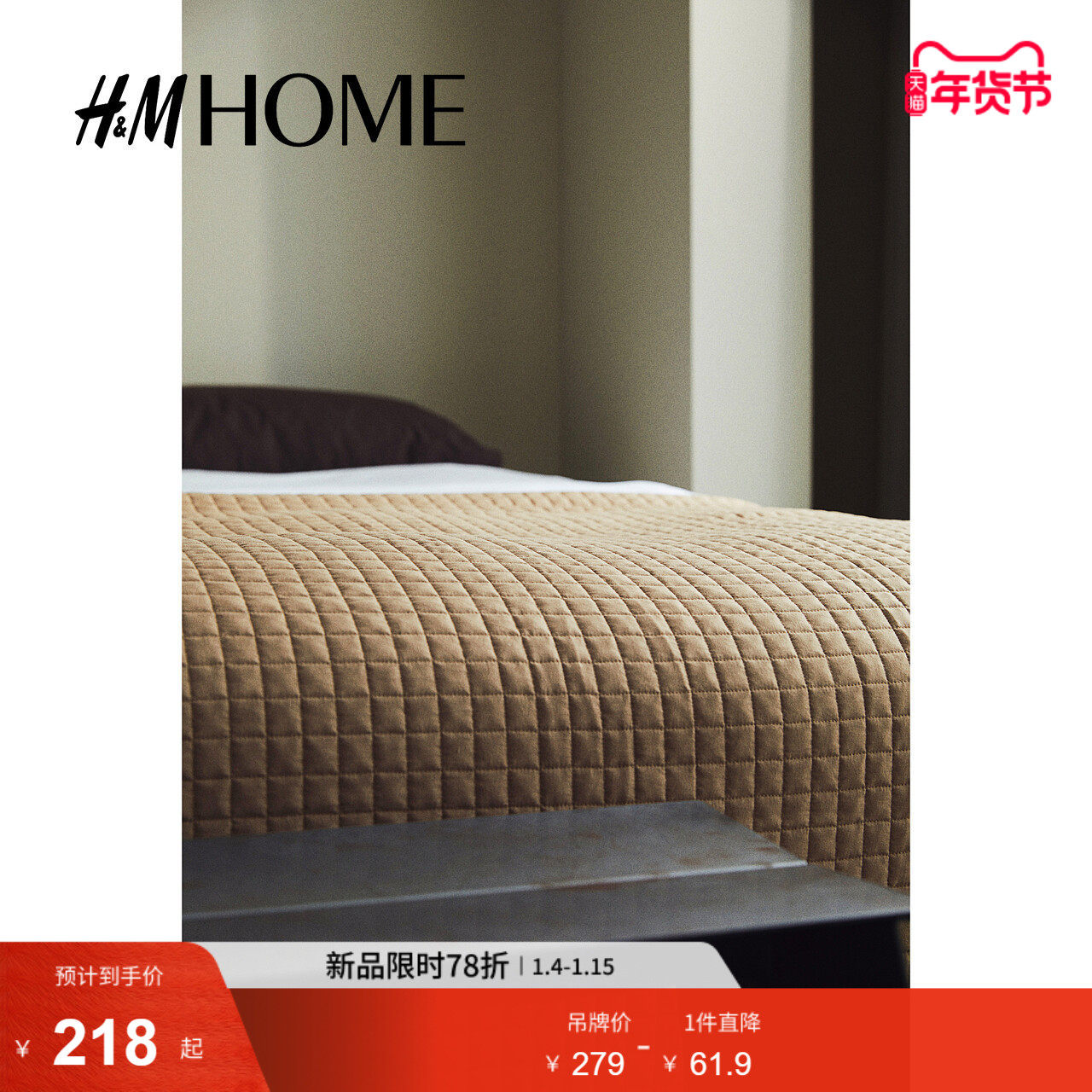HM HOME冬季卧室家居用品家纺产品绗缝床罩1260034
