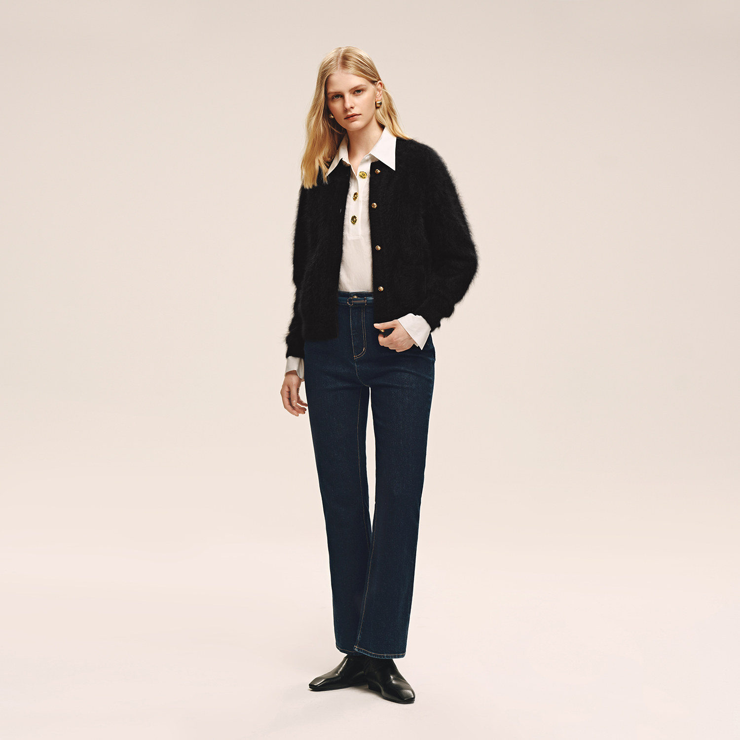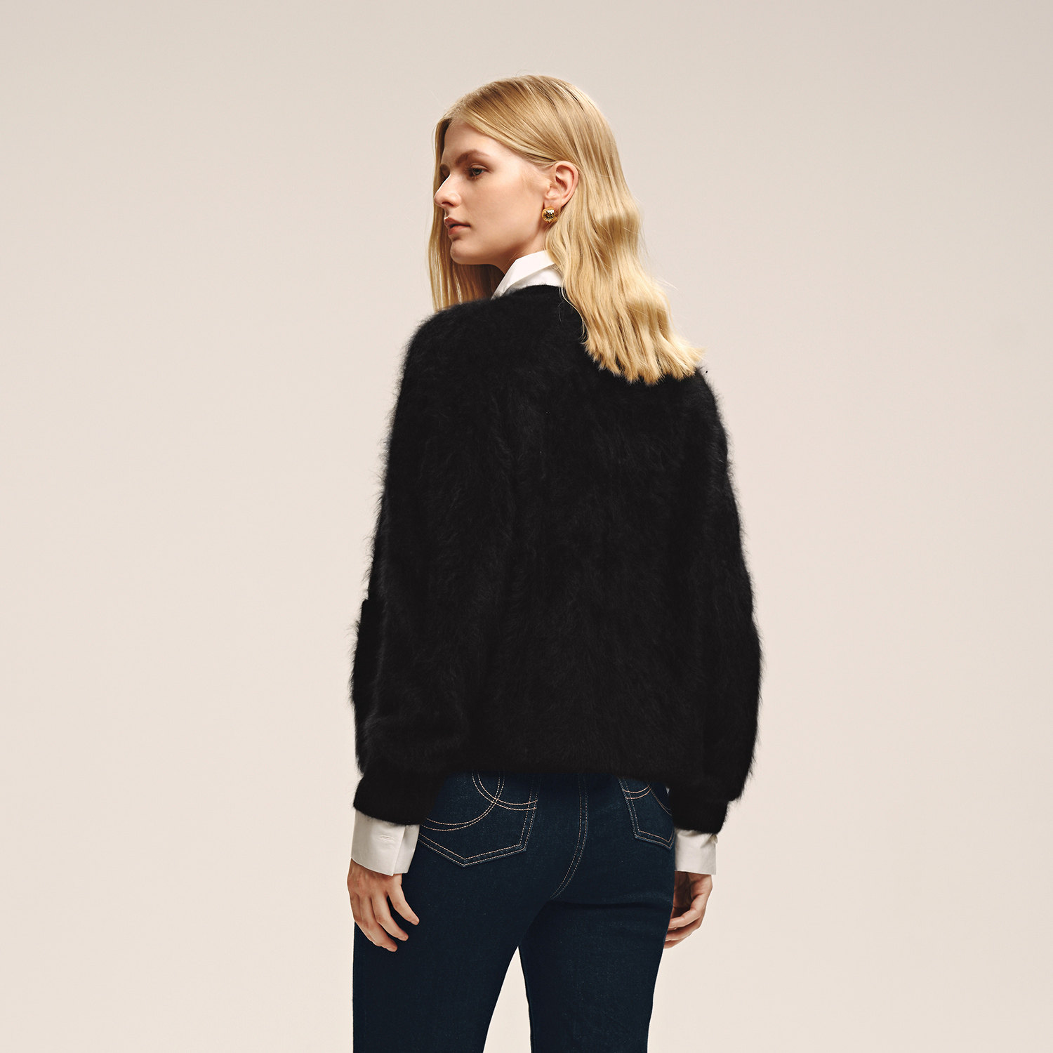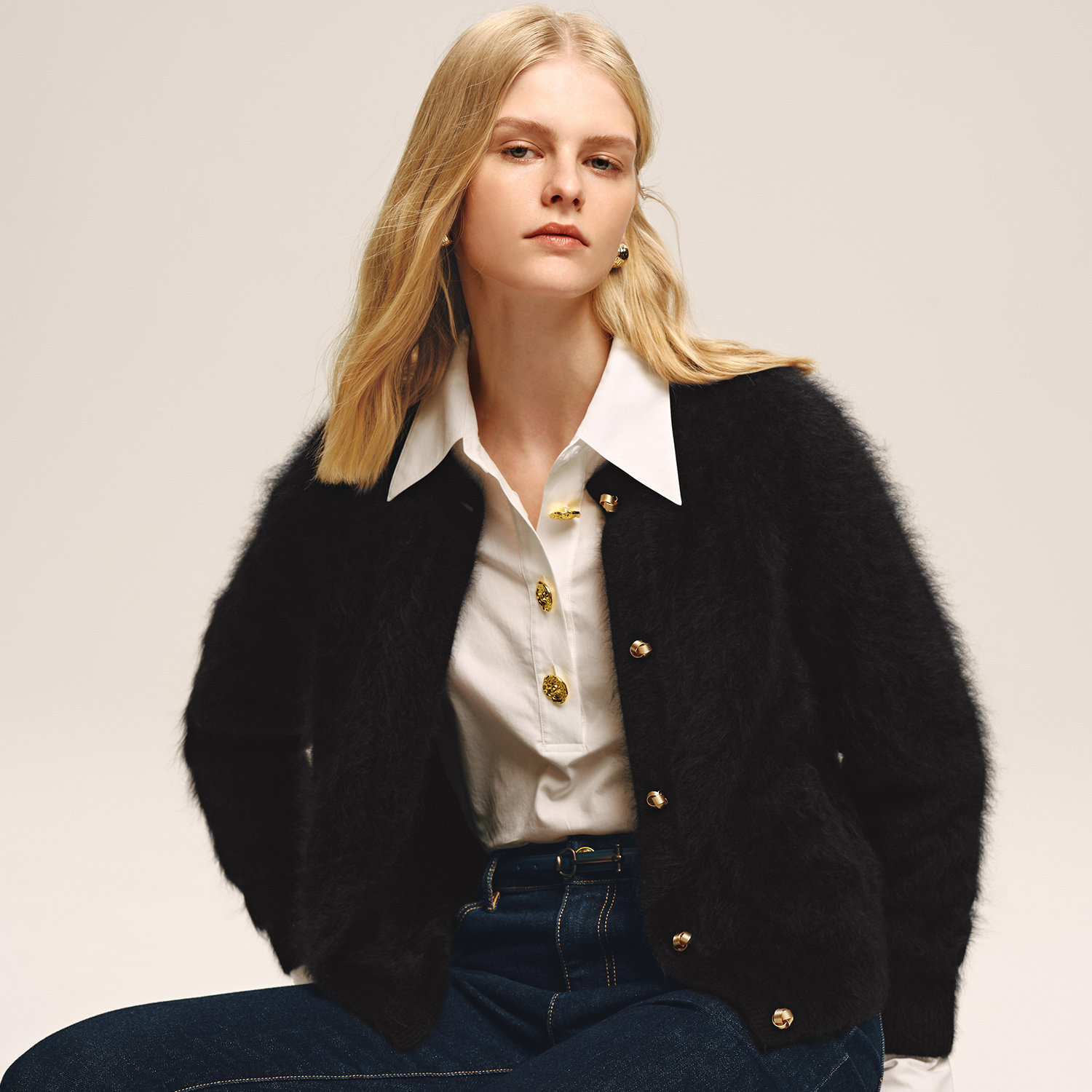 OVV2025秋冬新款女装简约优雅拉绒工艺休闲长袖羊绒开衫