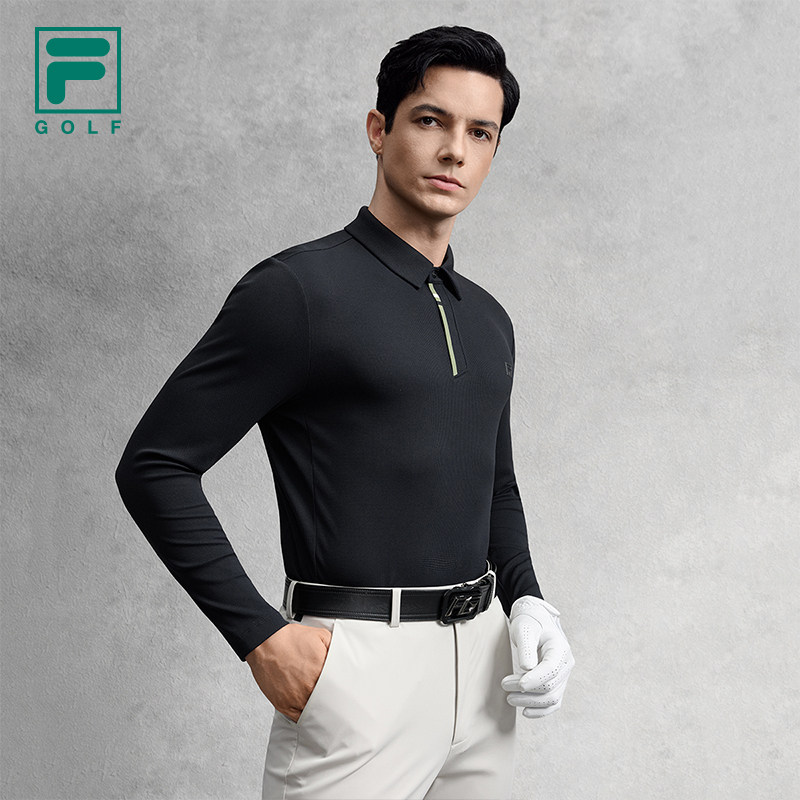 FILA 斐乐官方男子长袖POLO衫2025冬新款高尔夫防晒健身上衣
