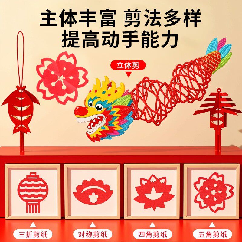 窗花剪纸手工中国风剪贴画新年工具儿童幼儿园材料纸学生底稿环创