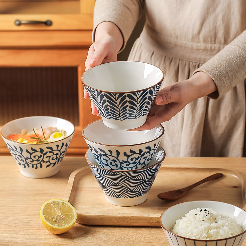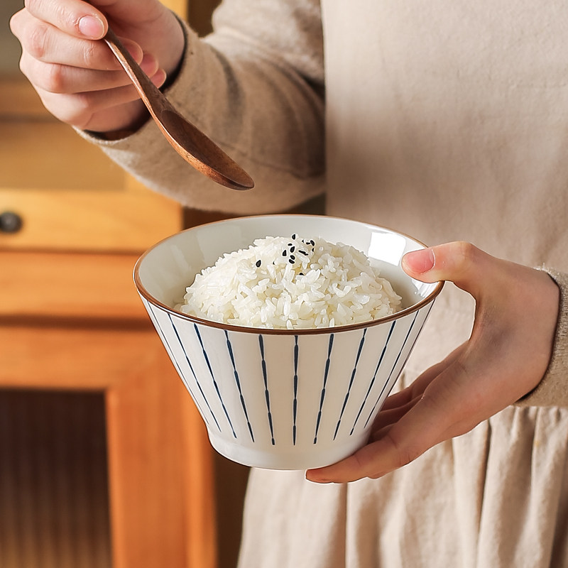 川岛屋日式5英寸饭碗家用2026新款陶瓷高脚吃饭碗餐具复古斗笠碗