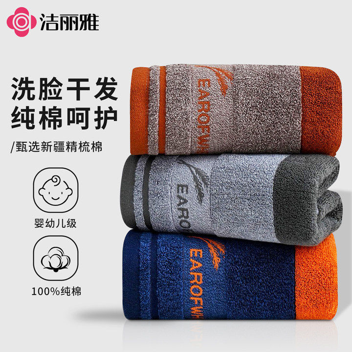 洁丽雅毛巾纯棉成人男女士100%全棉洗脸洗澡吸水不掉毛巾2025新款