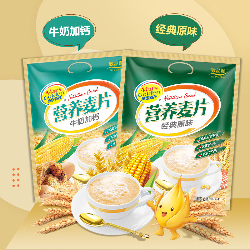 450g袋装牛奶加钙燕麦片即食原味麦片冲调冲饮营养早餐黄金麦氏
