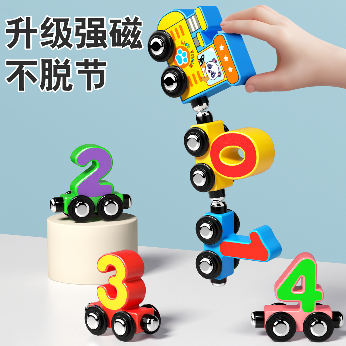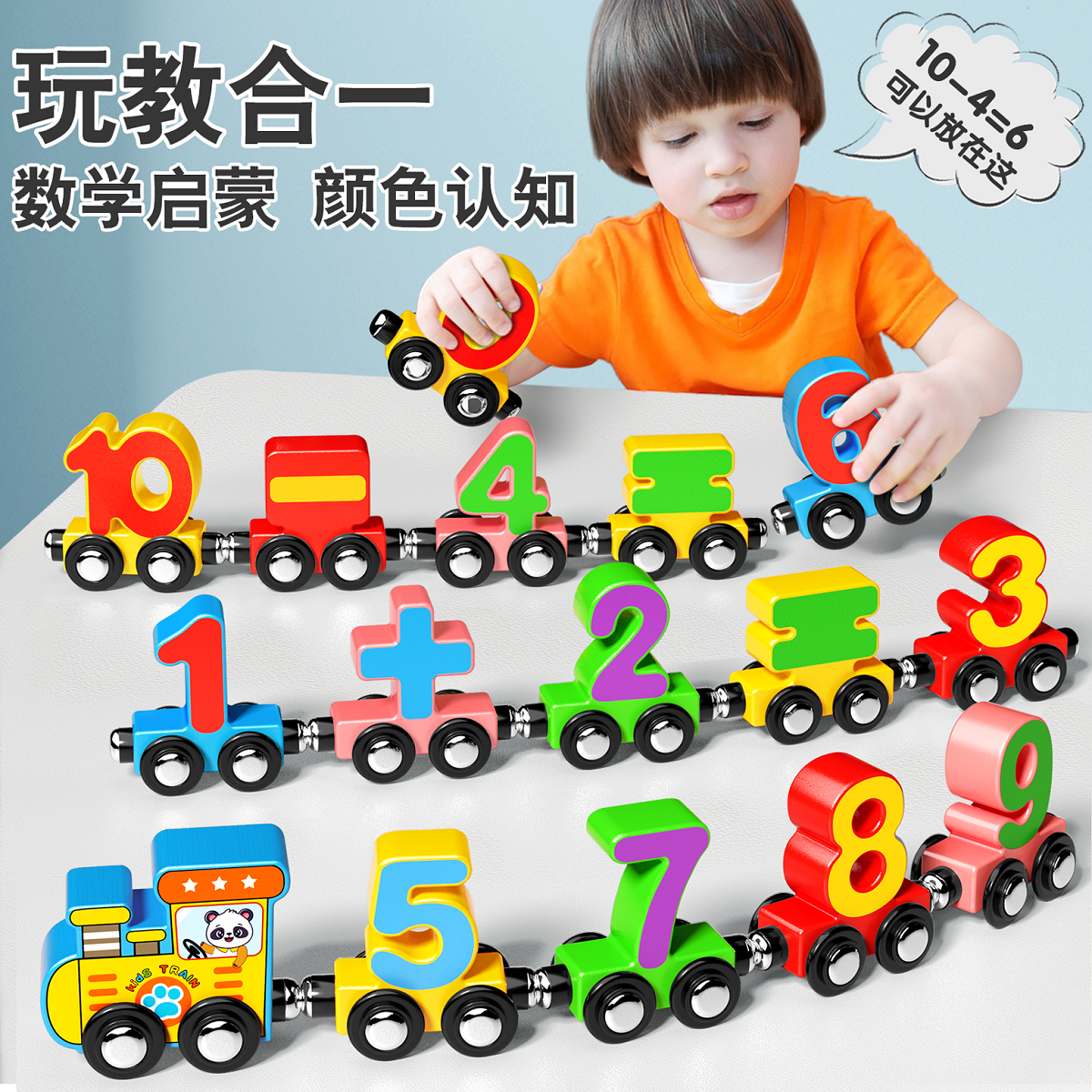 儿童早教益智数字小火车认知拼图木质宝宝1一3岁磁力积木拼装玩具