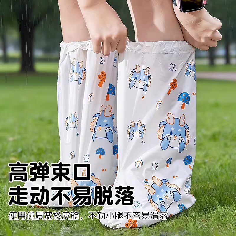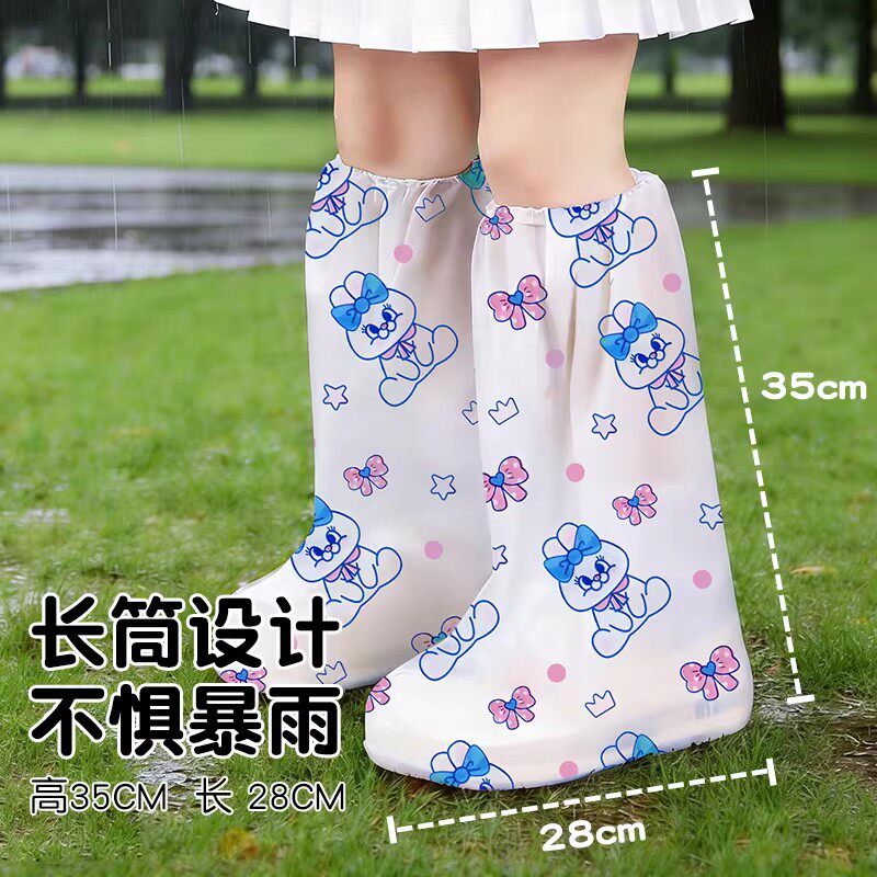 雨天一次性雨鞋套高筒加厚防滑儿童便携防水脚套学生印花雨靴长筒