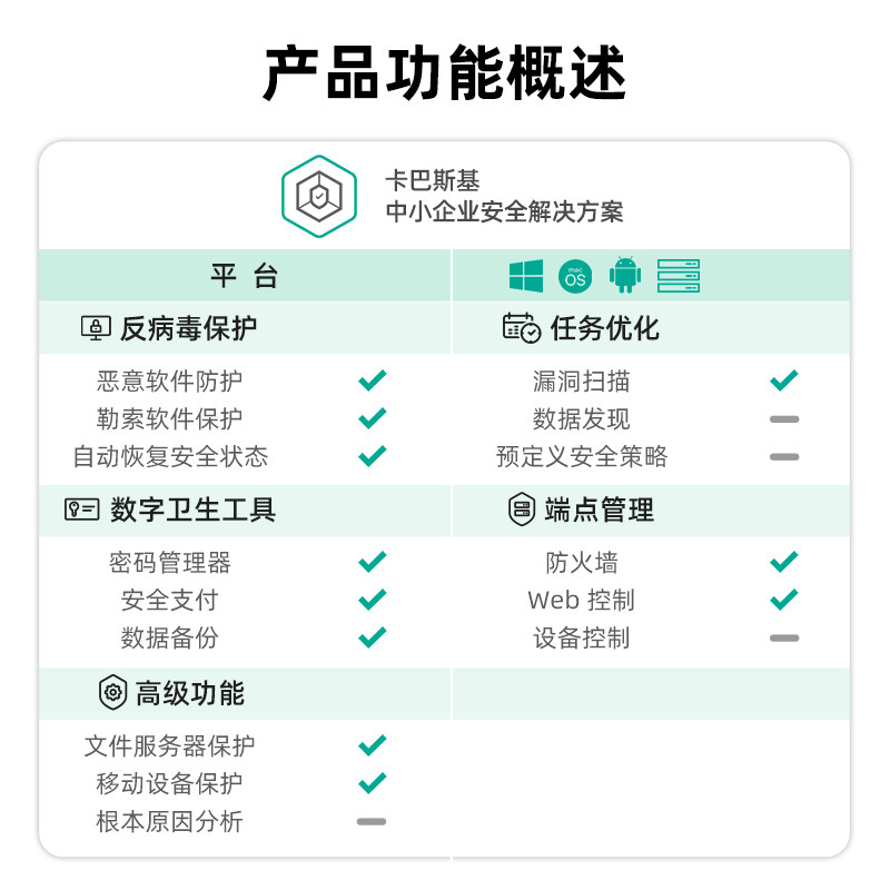 Kaspersky卡巴斯基中小企业安全解决方案10终端PC 1服务器 1年授权订阅VIP杀毒软件正版品牌旗舰店