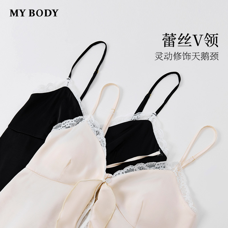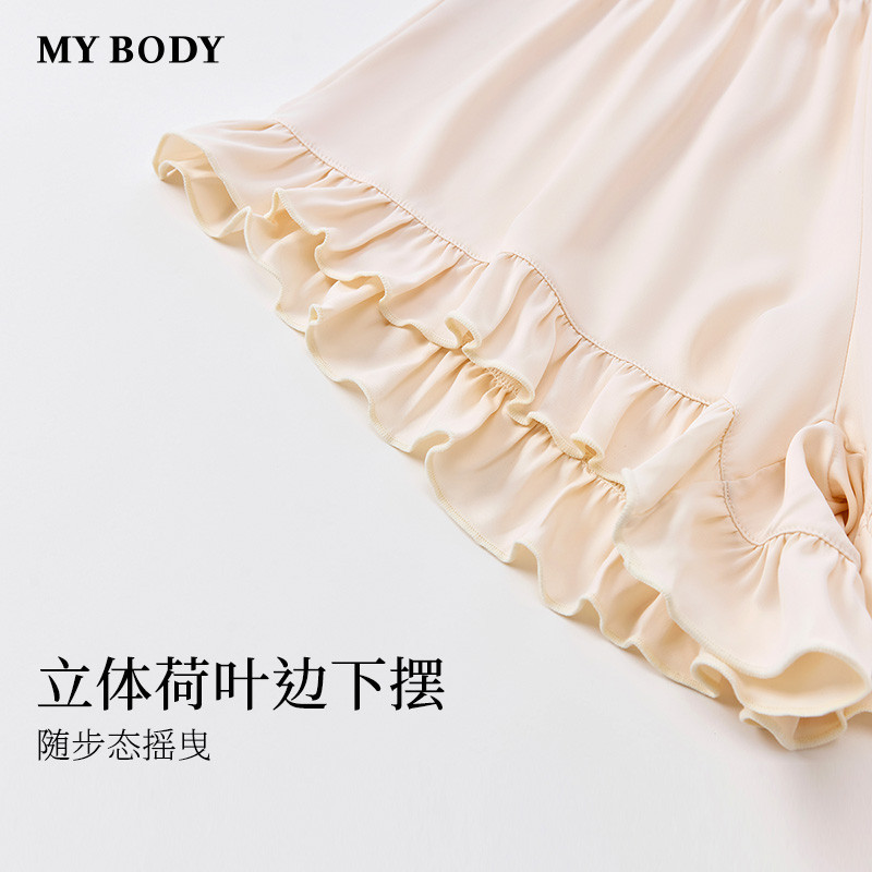 MYBODY商场同款新款睡衣甜美荷叶边性感吊带背心套装可外穿家居服