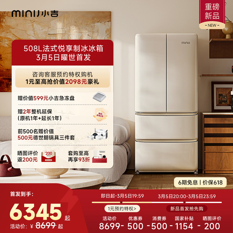 小吉508L法式冰箱家用大容量零嵌多门四开门复古电冰箱508plus