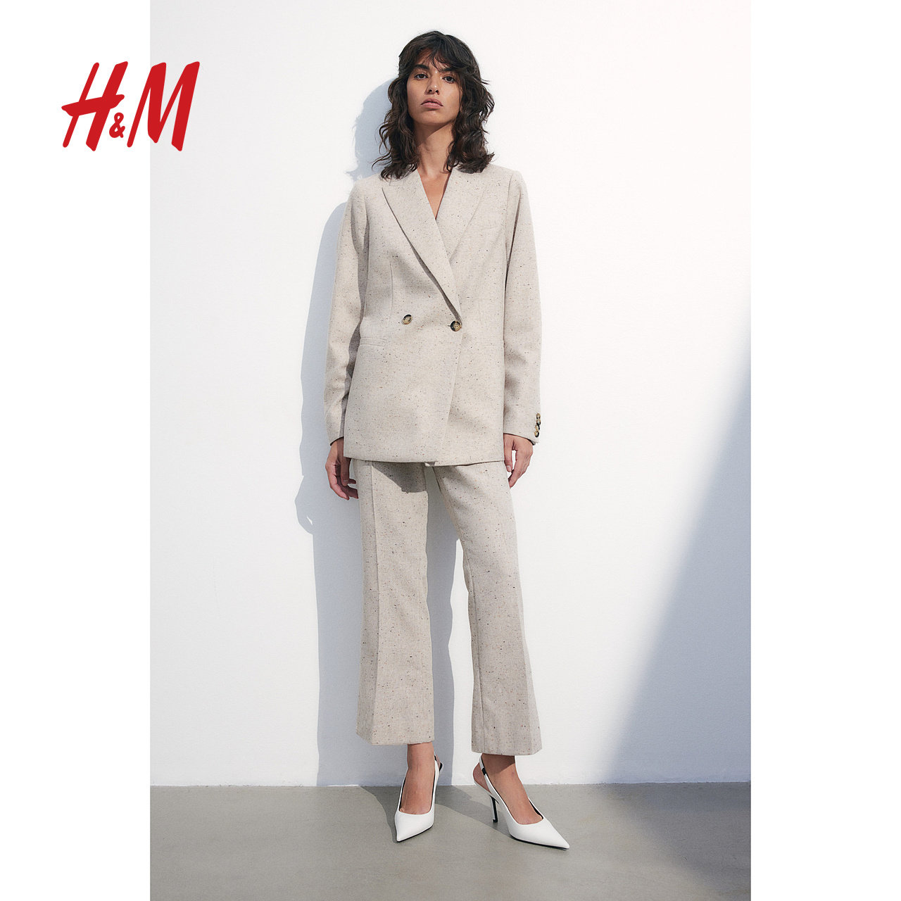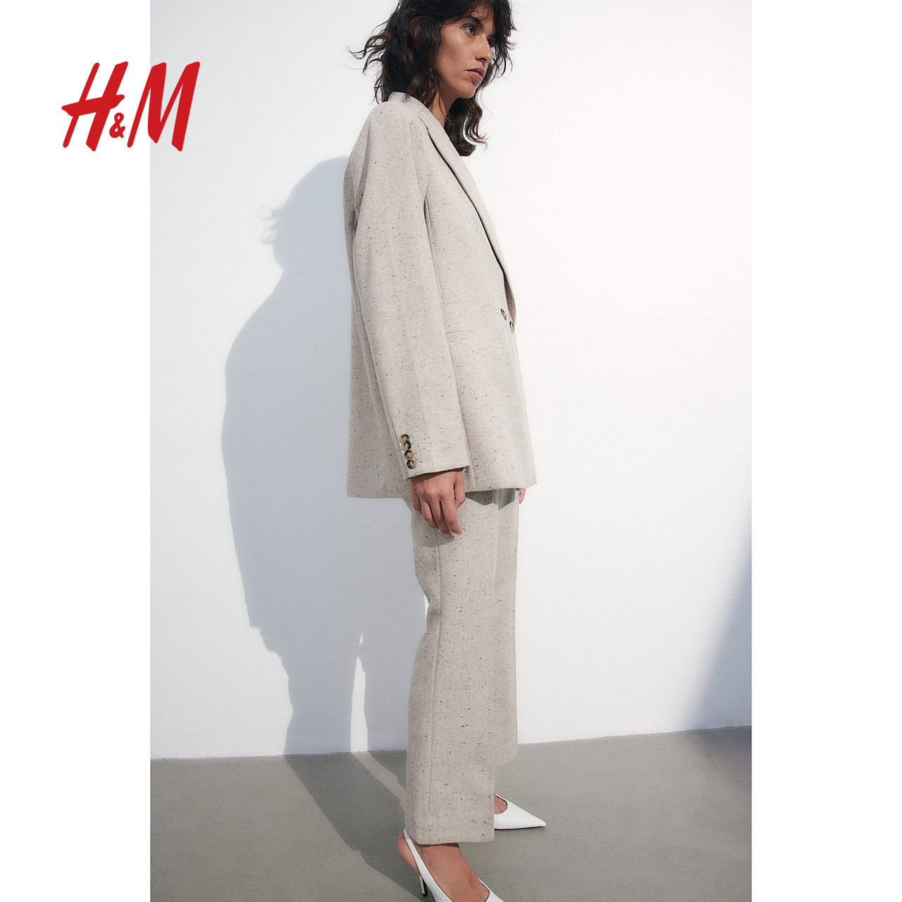 HM春季女装时尚休闲直筒阔腿高腰西裤1191214