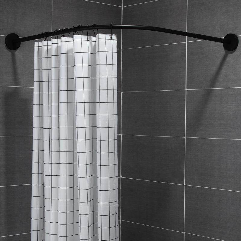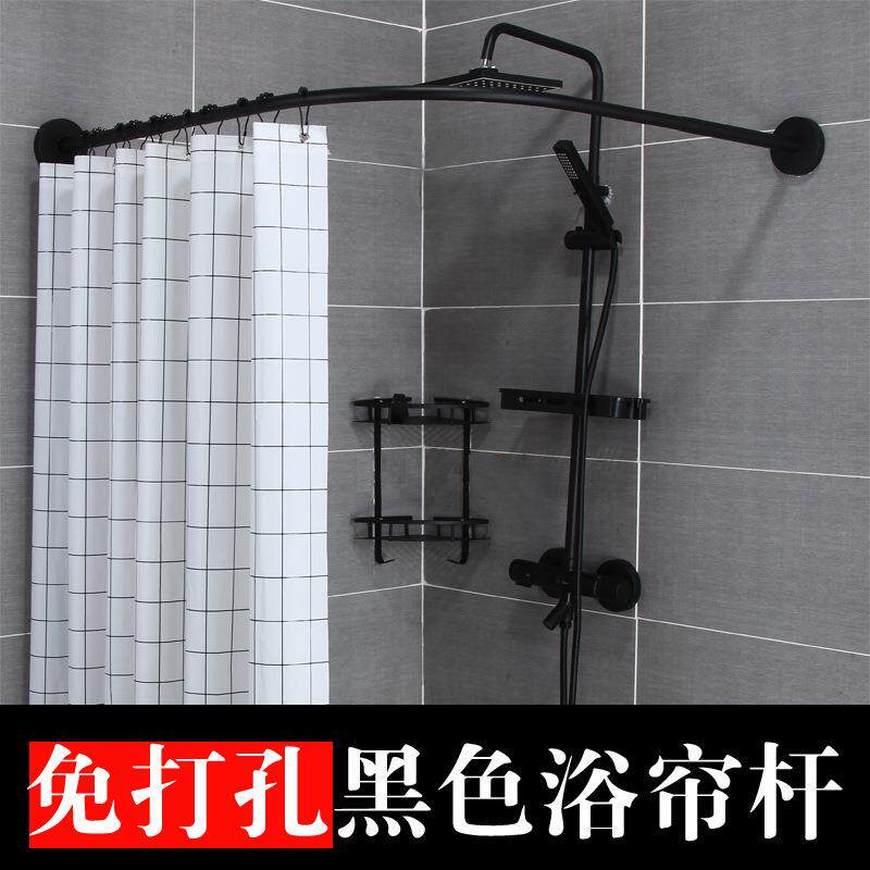 WBZ7浴帘杆弧形免打孔卫生间干湿套装转角浴室防水布U形L型伸缩浴