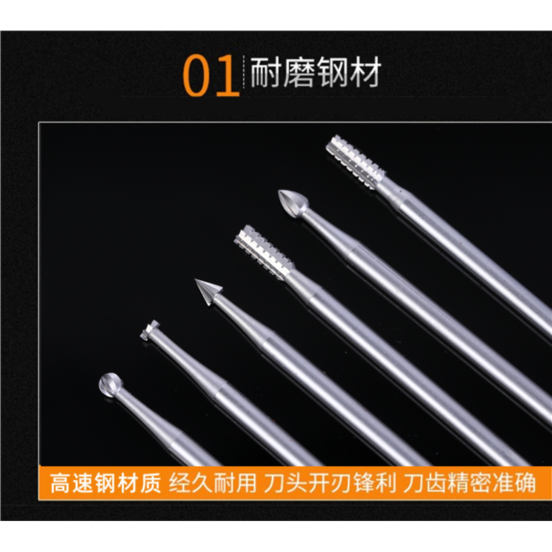 电动雕刻刀头橄榄核核桃牙机核雕微雕木雕工具套装钻头丸球直牙刀
