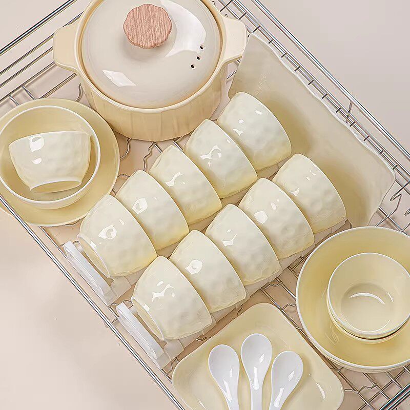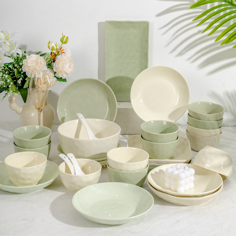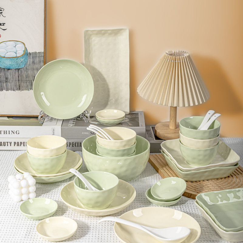 釉下彩碗碟套装家用2026高颜值法式奶油风餐具套装碗盘乔迁微波炉