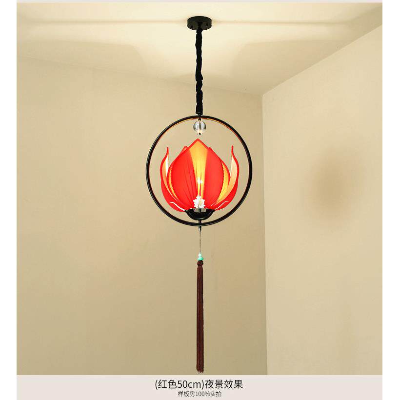 新中式荷花吊灯创意个性莲花灯餐厅书房灯具北欧仿古茶楼吧台灯饰