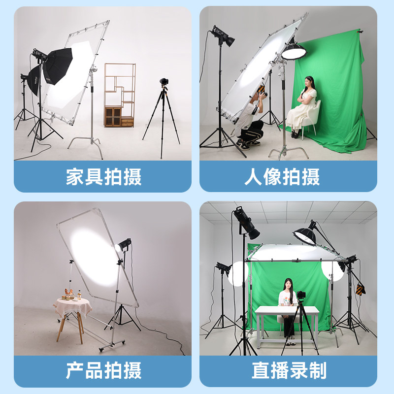 大型摄影柔光屏套装蝴蝶布影室广告拍摄挡光板遮阳架大号可移动旗板人像拍照柔光纸不锈钢大号神牛吸光板支架