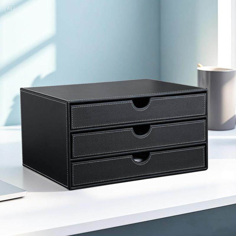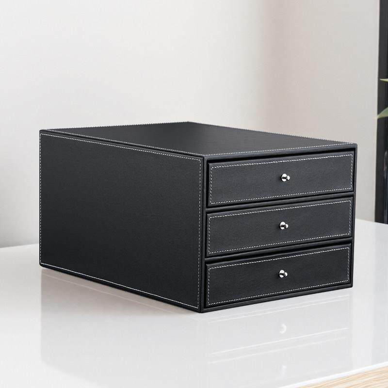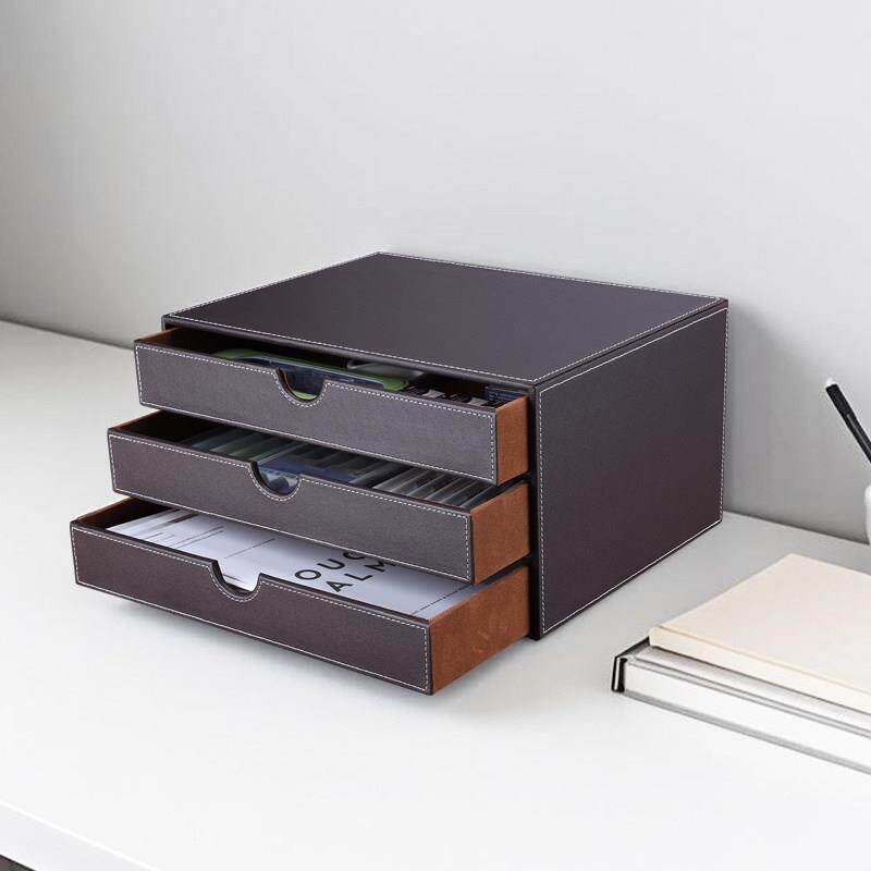 商务办公用品桌面文件柜 A4文件收纳柜 资料文件抽屉式收纳盒皮革