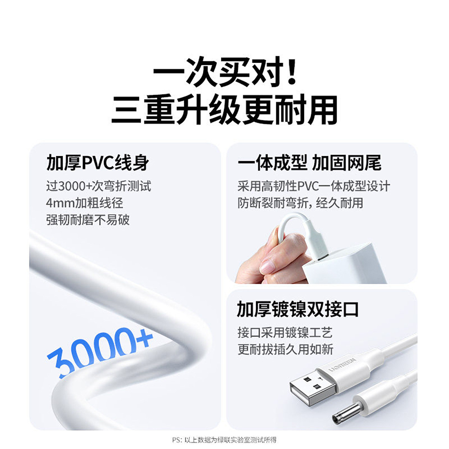 绿联圆孔充电线圆头usb转dc3.5mm通用台灯玩具电源数据电动牙刷小夜音响适用于foreo露娜洁面luna洗脸仪mini2