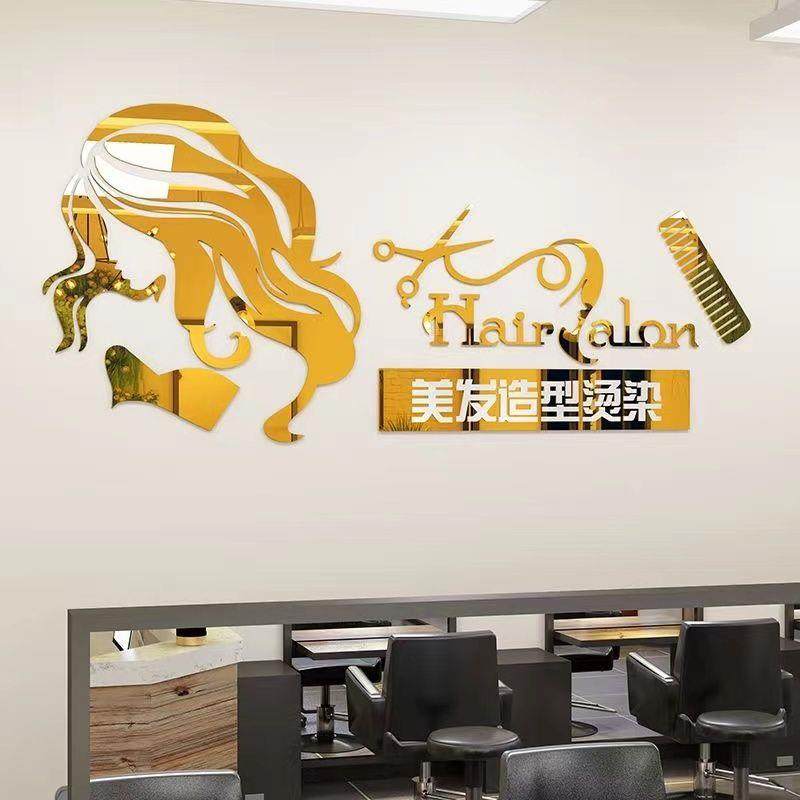 新20233d亚克力美容美发店创意装饰墙贴画定制发廊收银台自粘背景