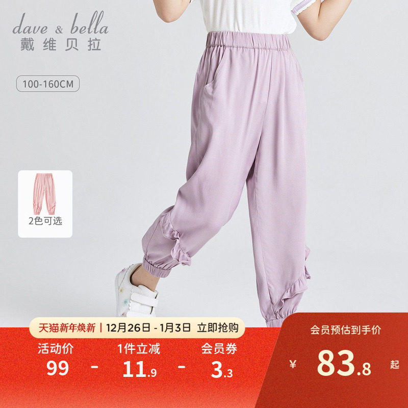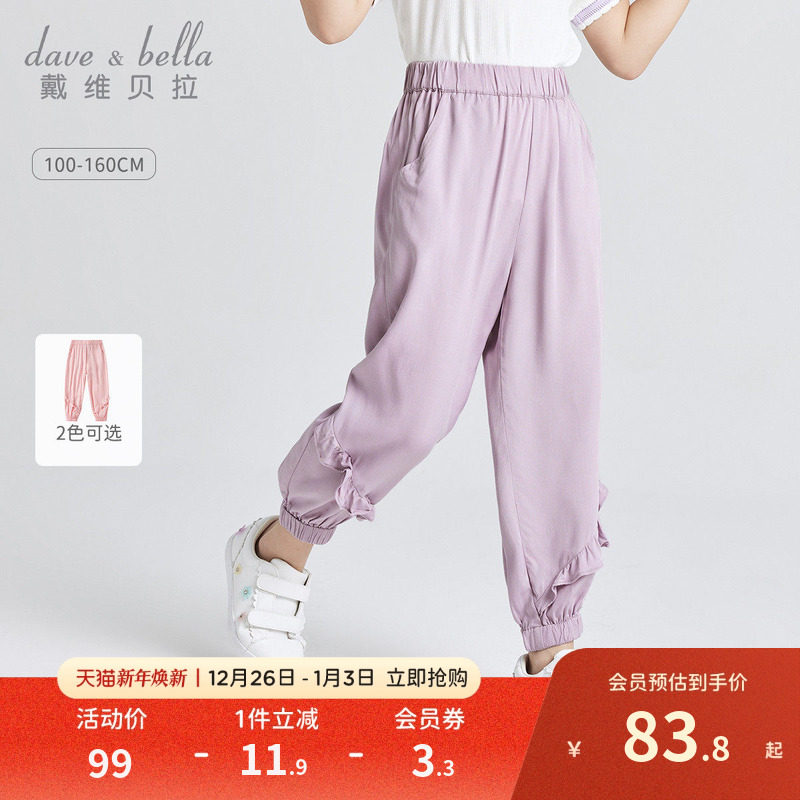 戴维贝拉儿童裤子夏季防蚊裤女童夏装新款长裤运动裤女孩童装夏裤