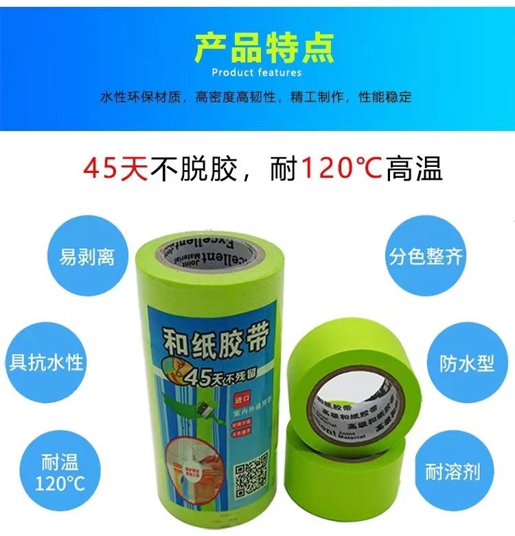 45天不脱胶和纸胶带分色纸胶带装修喷漆遮蔽瓷砖美缝纸胶带室内外