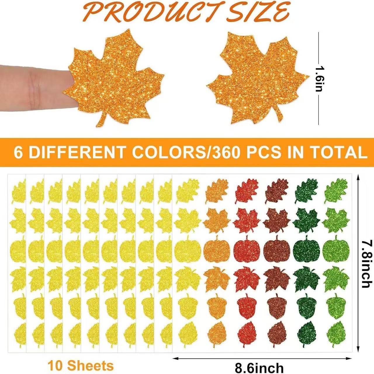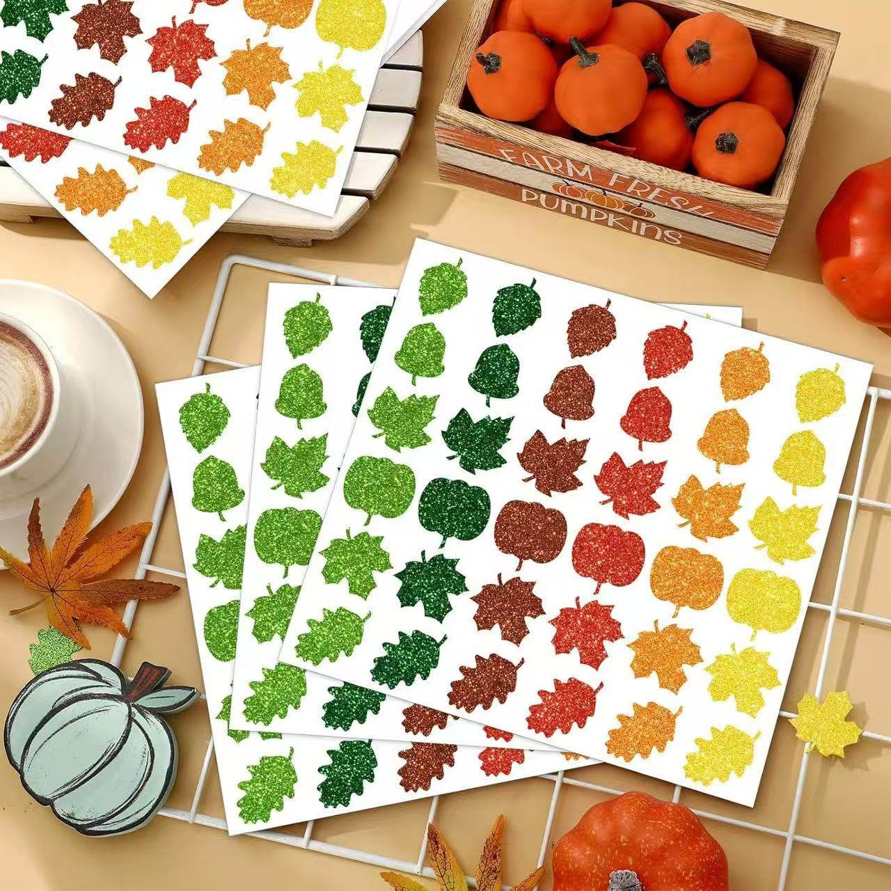 360贴/包直径4cm彩色镭射异形枫叶南瓜形状贴纸感恩节装饰贴