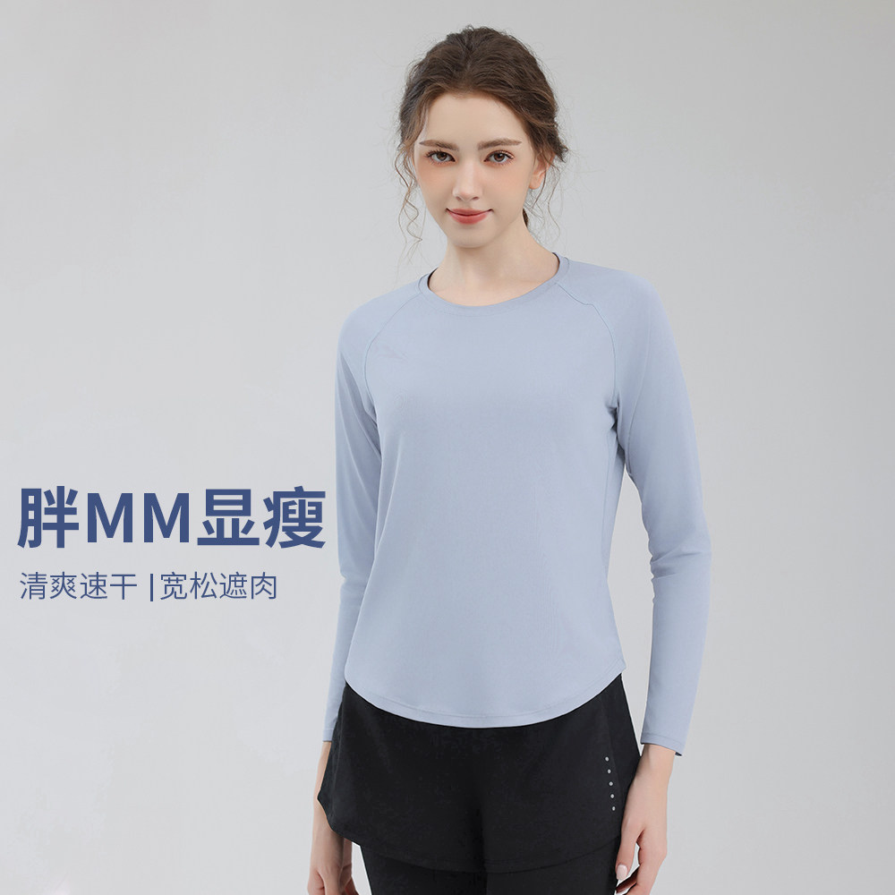 T恤瑜伽服女秋冬新款长袖显瘦跑步运动上衣健身服骑行服速干薄款