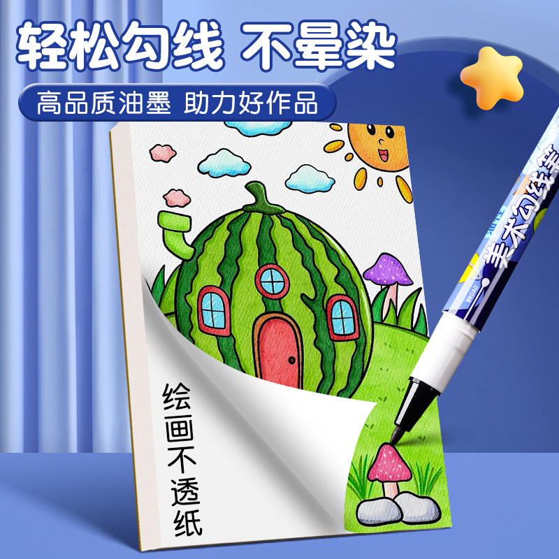 晨光勾线笔幼儿园儿童美术专用小学生不晕染油性记号笔粗细双头黑色防水防油不掉色安全无毒大容量快干画画用