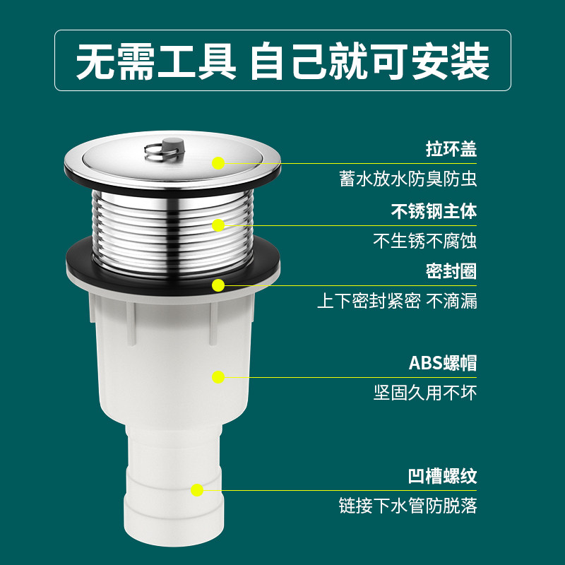 不锈钢拖把池下水器洗衣池排水口大理石盆拖布池下水管套装配件