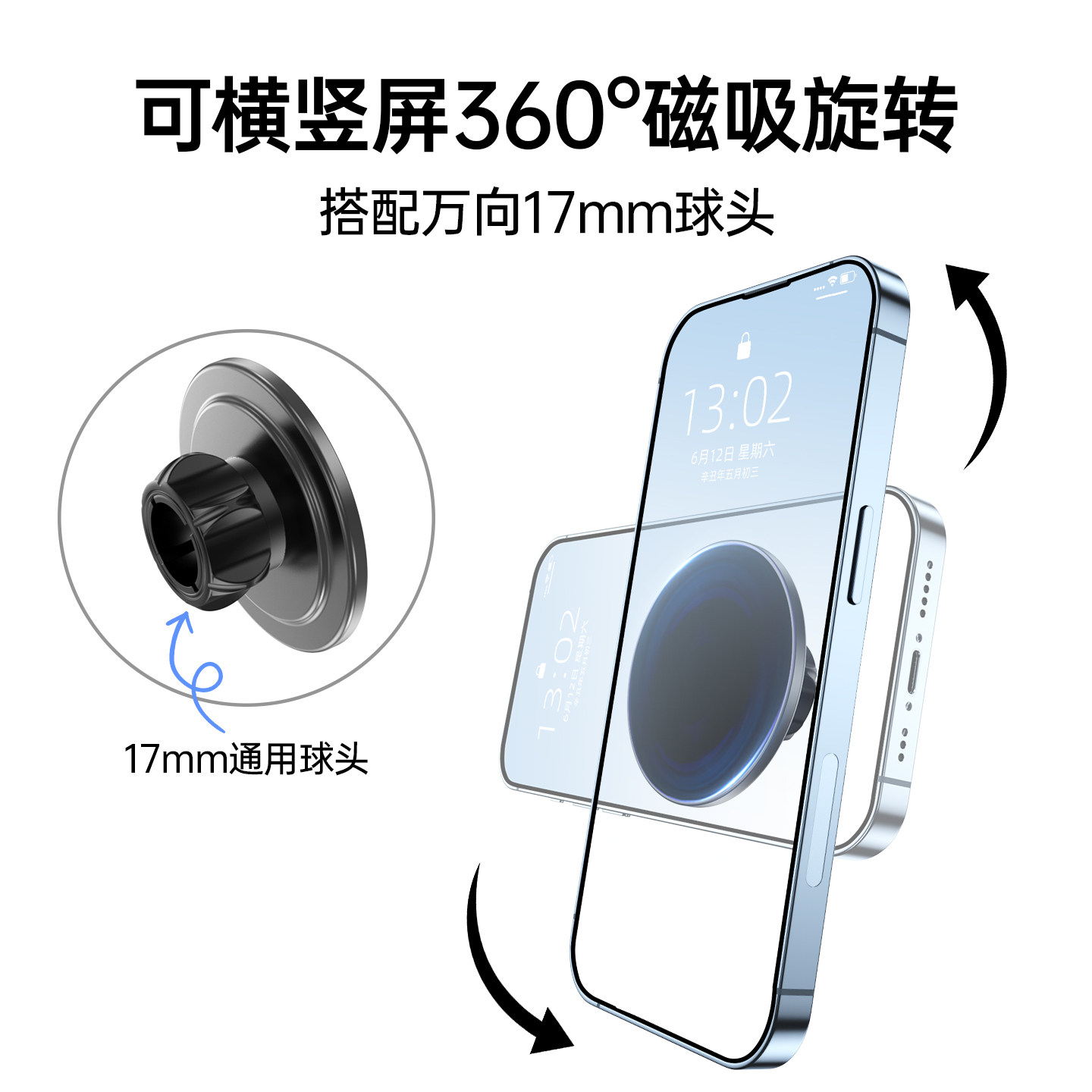 Magsafe磁吸头17mm球头万向头金属强磁汽车车载仪表桌面落地悬臂手机支架圆头转换改装通用神器转接头铝合金