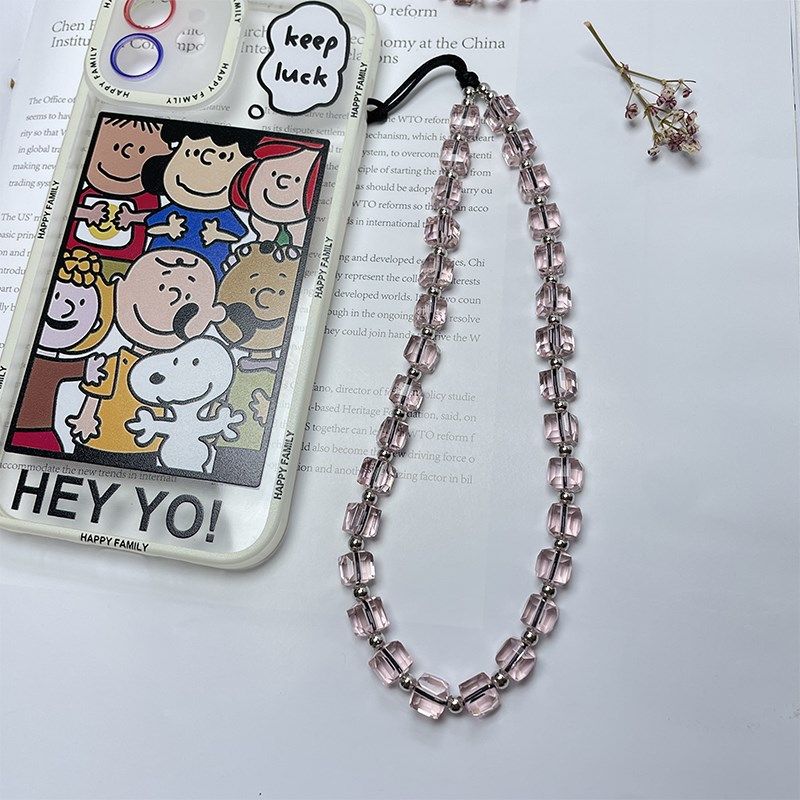 粉色少女心切角四方人造水晶挂饰品diy串珠短款手机女男生挂链条