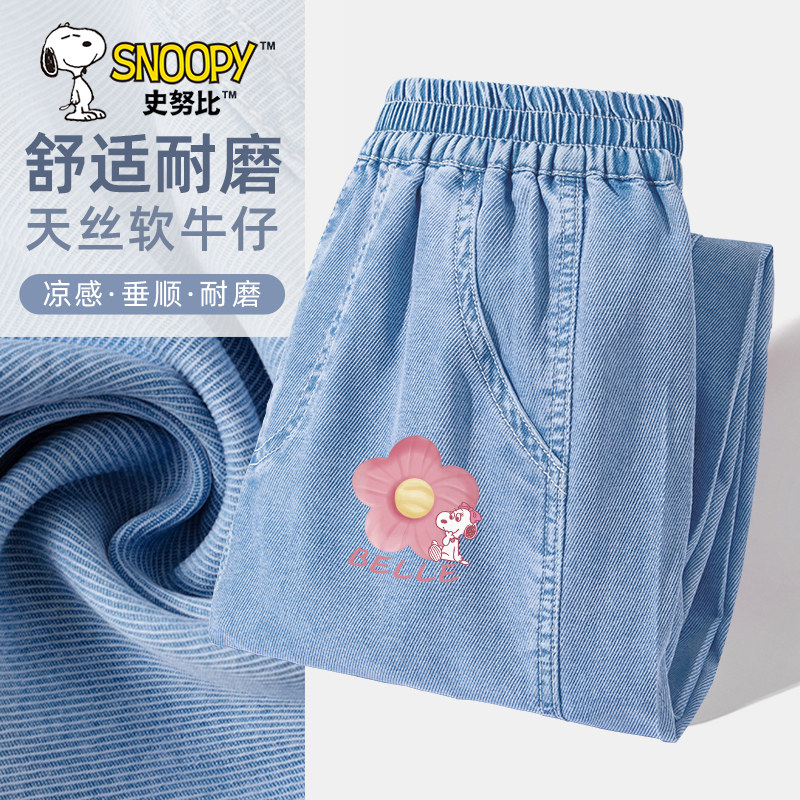 史努比女童裤子夏薄款2025新款女孩夏季冰丝防蚊裤儿童天丝牛仔裤