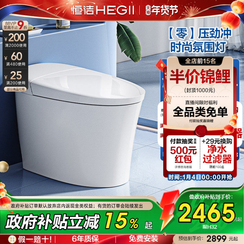 HEGII恒洁智能马桶坐便器一体式冲水无水压限制大冲力家用小户H32